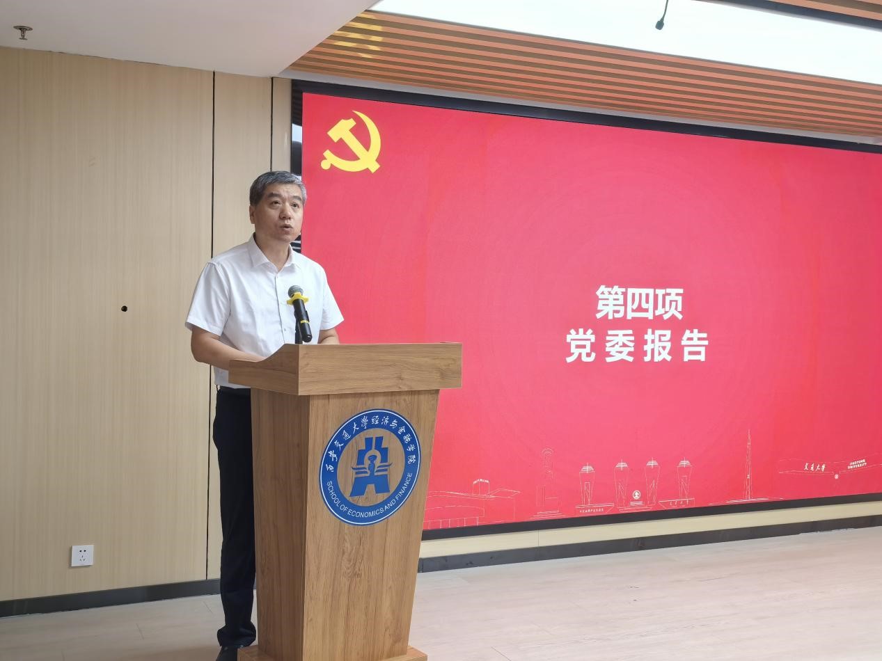 学院党委书记周建伦代表学院党委作题为《守正创新,踔厉奋发,为创建一流经济学院而努力奋斗》的报告。报告回顾了学院自第五次党代会以来,在党的建设、人才培养、学科建设、队伍建设、科研成果、社会服务等各方面取得的主要成绩和经验。未来五年,学院党委将聚焦于培养“一流经济学家、一流企业家、一流公共管理人才”的目标,坚持“财经为本、理工强基、知行致用”的办学特色,深化教育教学改革,凝练学科方向,组建高水平科研团队,围绕学术前沿和国家重大需求开展有组织科研,致力于实现党的领导更加坚强有力、学院核心竞争力显著提升、改革动力更为强劲、凝聚力进一步增强,全力开创学院事业发展的新局面。报告强调,要充分发挥学院各党支部的战斗堡垒作用和全体共产党员的先锋模范作用,团结全院师生员工,抓住机遇,守正创新,以更加昂扬的斗志和务实的行动,投身于学校建设世界一流大学的伟大事业中,为建设中国特色、世界一流经济学院而努力奋斗。