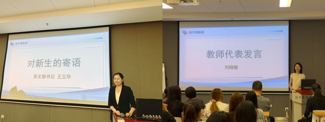 会议伊始,王乐教授代表电子商务系向全体新生表示热烈欢迎,并从科研成果、学术活动、社会服务等方面作了全面介绍,帮助新生深入了解专业特色与发展前景。随后,青年教师代表刘晓敏老师结合自身科研与成长经历,勉励同学们保持求知的好奇心与科研的韧性,同时关注身心健康,以积极饱满的状态迎接挑战。系支部书记王立华老师寄语新生,希望同学们明确目标、脚踏实地、拒绝焦虑、笃行不怠,在未来三年的学习生涯中不断提升自我,学有所成、学有所获。高年级学生代表、2023级研究生于乐分享了个人的学习体会与求职经验,从课程学习、研究方向选择、实习准备等方面提出了切实建议,鼓励同学们尽早规划,积极参与实践。在自由交流环节,新生们围绕就业方向、时间规划等内容踊跃提问,与会教师一一耐心解答,现场气氛热烈融洽。
