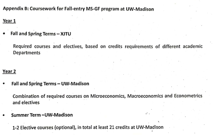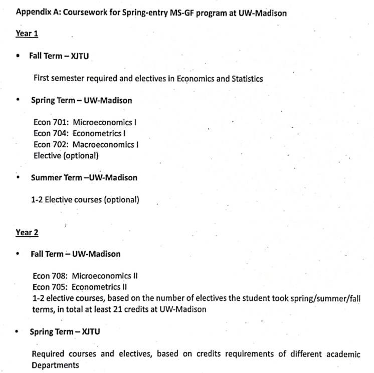 2023年4月,我院与美国威斯康星大学麦迪逊分校已成功签署经济硕士双学位协议,根据协议规定,我院学生在威斯康星大学麦迪逊分校就读一年,在我校就读两年,只要达到双方学校所要求的毕业要求,即可取得两所学校的双学位。(所有费用由学生自理)