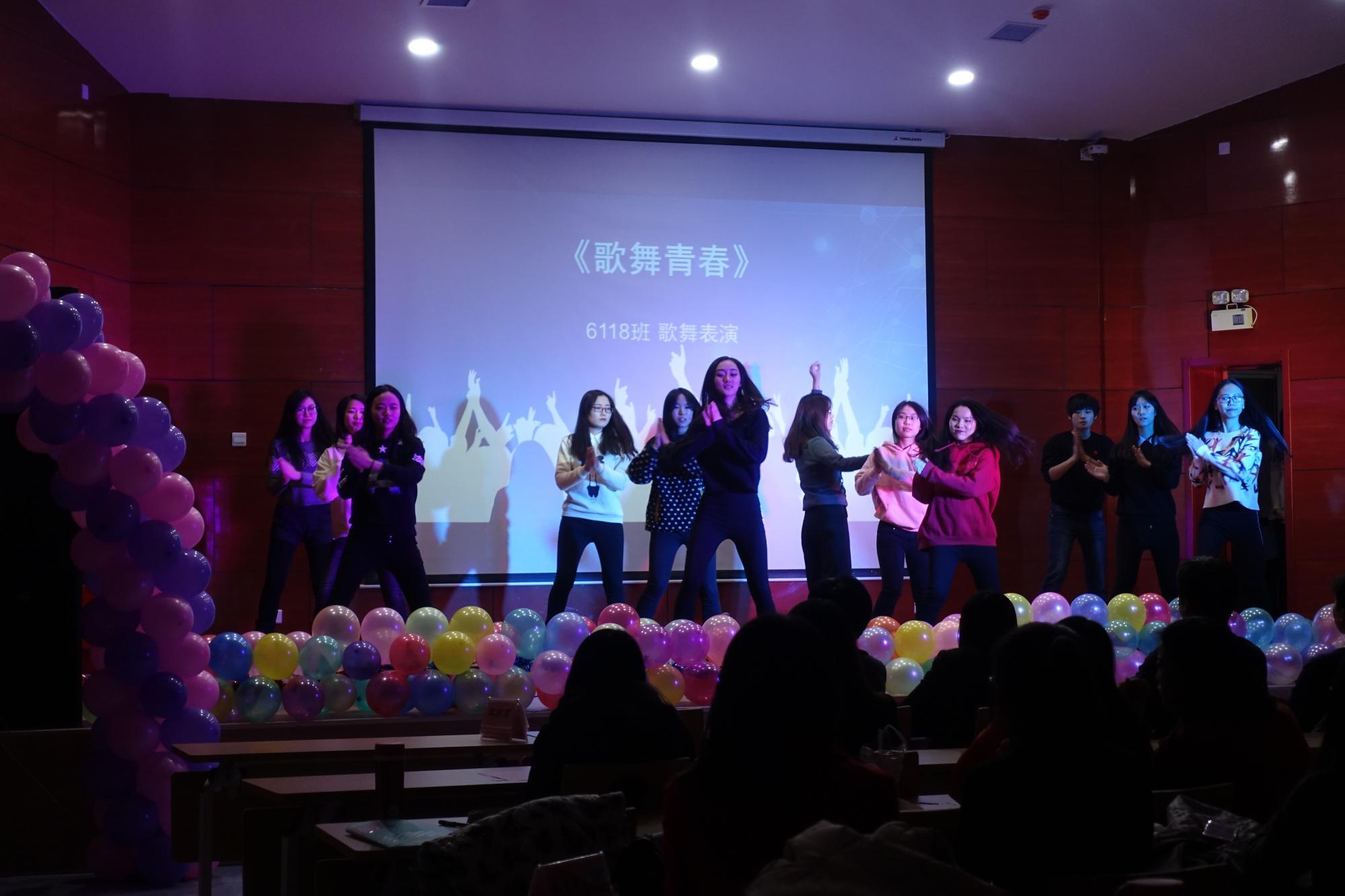 在第一个环节中,每个班都派出了自己代表队,用他们精彩的才艺表演表达了对祖国母亲以及对母校的热爱之情。其中,6111班合唱歌曲《和你一样》以及6118班舞蹈《歌舞青春》获得了阵阵掌声和欢呼。梦想让我们的心碰撞在一起,轻快的旋律混合着时代的气息,在这精彩绝伦的表演中,现场所有师生的热情高涨。