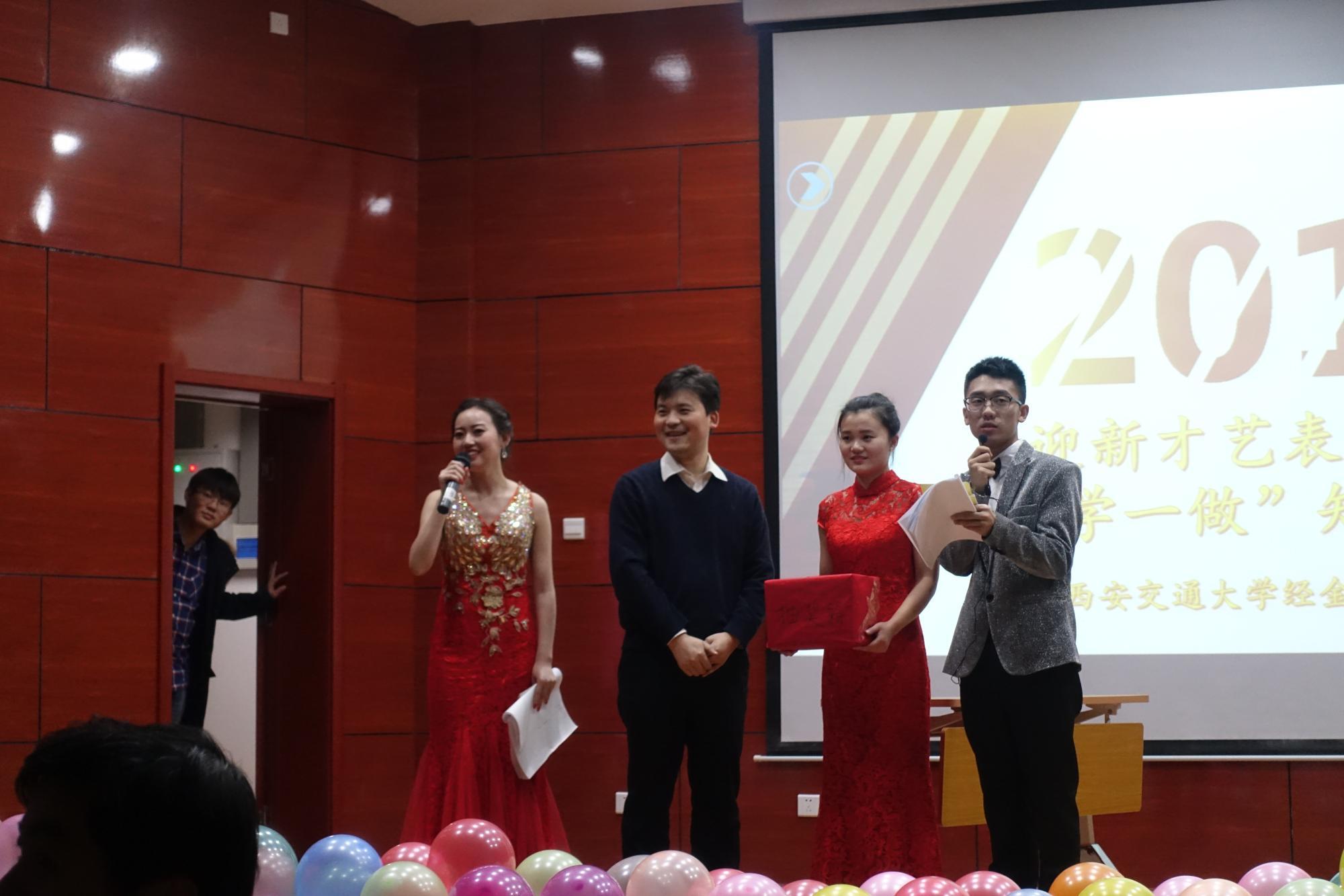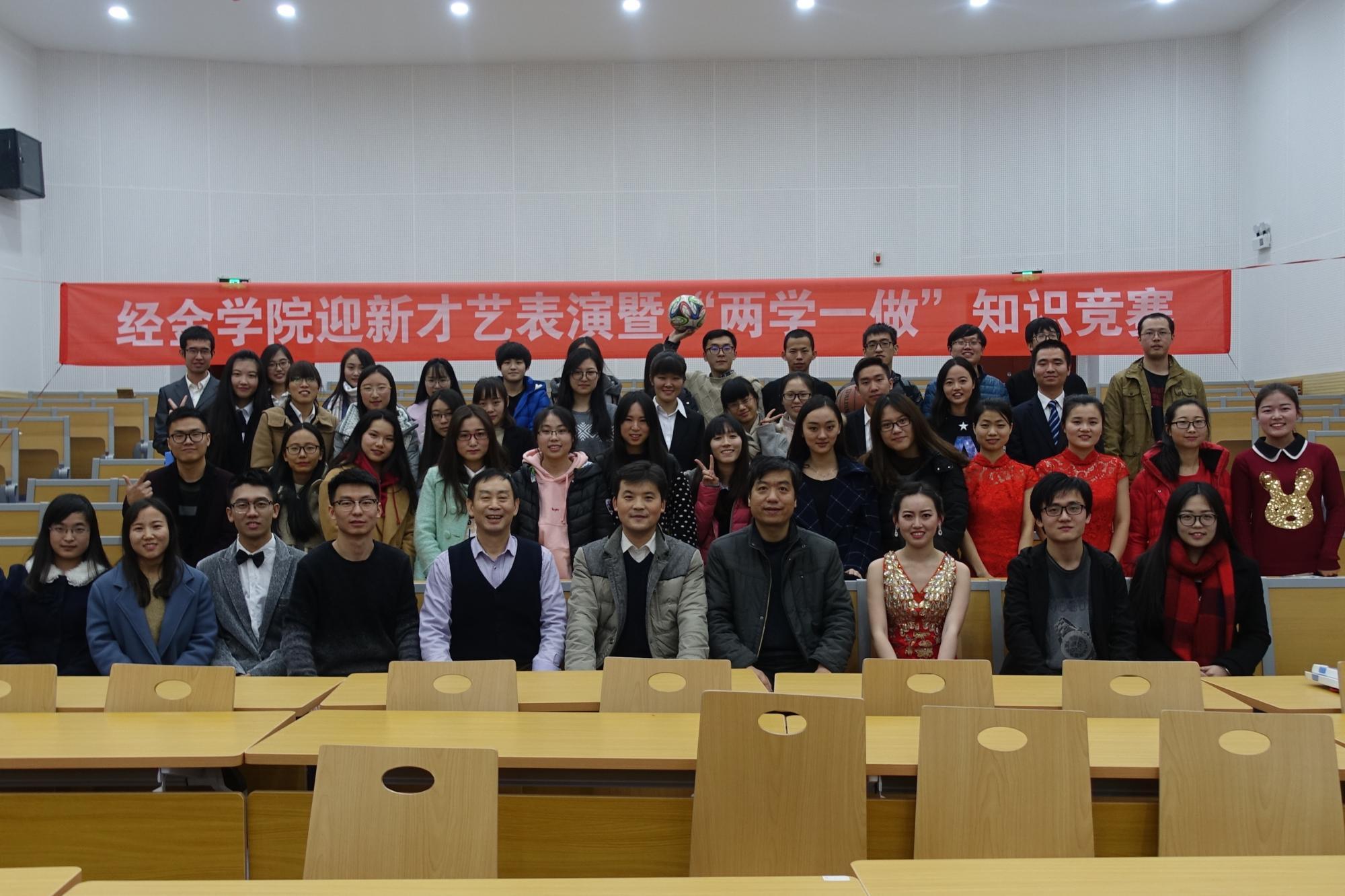 2016年12月23日晚,经金学院迎新才艺表演暨“两学一做”知识竞赛活动在财经主楼西配三报告厅举行。迎新才艺表演活动是经金学院的传统品牌活动,也是该院同学展示自己风采才艺的一次机会。当前,适逢“两学一做”学习教育正在进行中,活动承办方国旗班积极将学习教育活动与才艺展示结合起来,寓教于乐,受到了老师和同学们的一致好评。