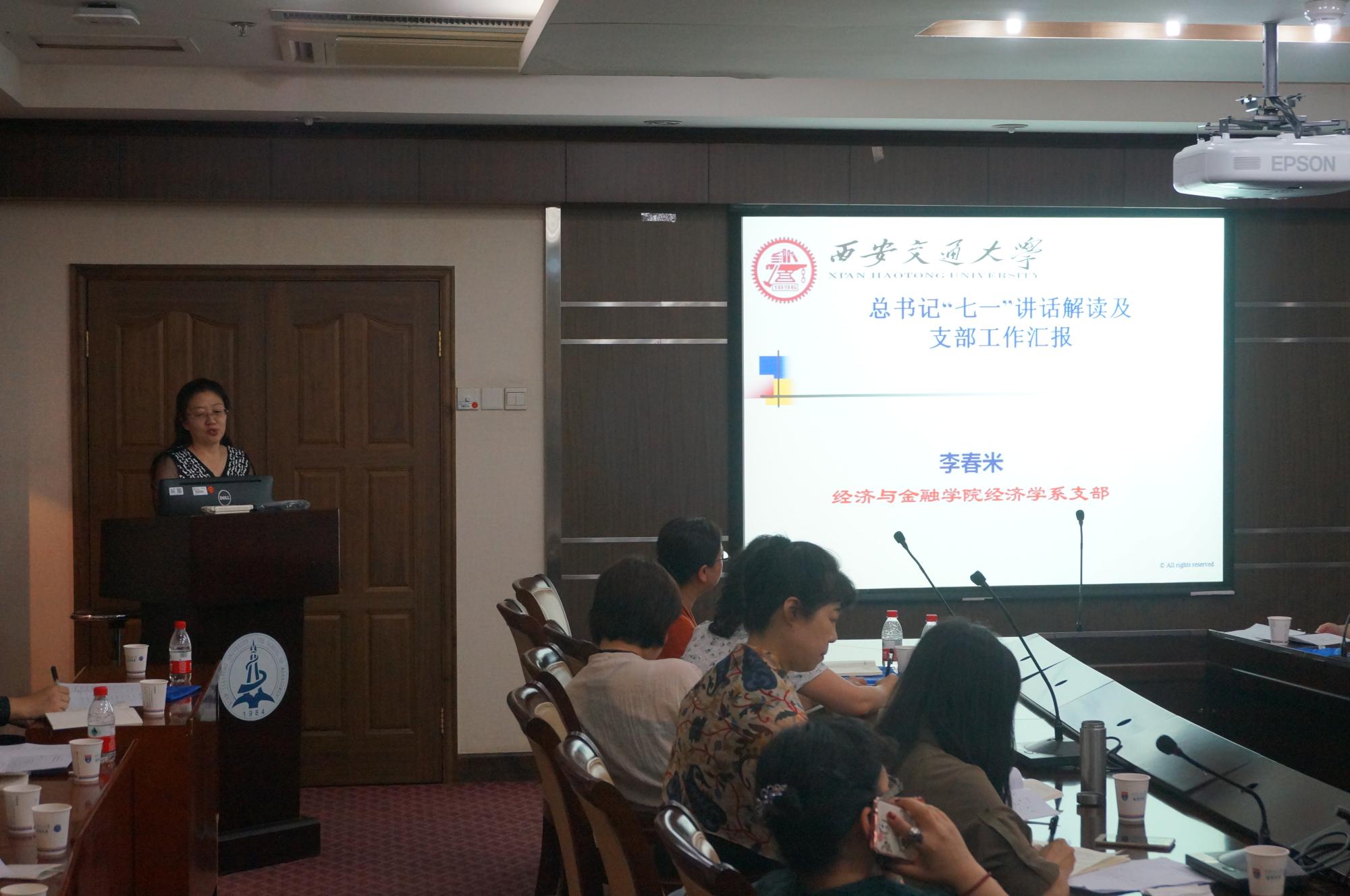 会议中,六班部分党支部书记向大家展示了微党课,他们是:第一附属医院党委急诊科杜凯龙的《习主席为世界经济划重点》、外国语学院多语种党支部彭玲的《支部风采展示》、经金学院党委经济学系党支部李春米的《总书记“七一”解读》、第一附属医院党委康复营养科尚翠侠的《创新与变革》、机关与直属单位党委规划基建党支部李平的《当代中国八种社会思潮》、外国语学院机关党支部马薇的《支部工作概况》。