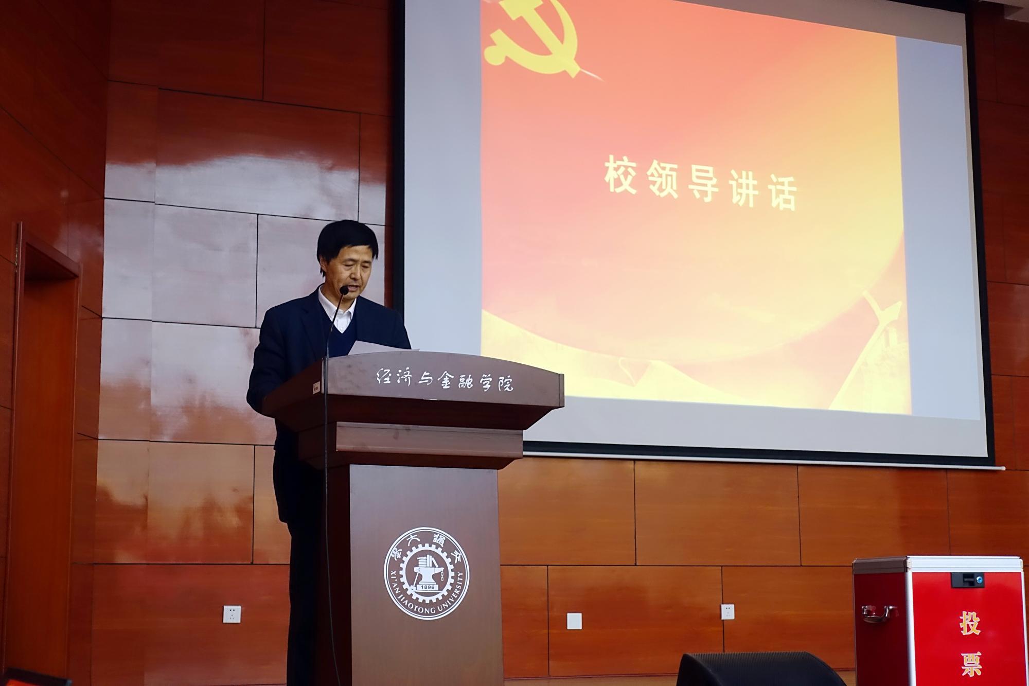 第五次党员代表大会在财经东配三楼会议室召开。校党委副书记、纪委书记赵军武,校党委常委、统战部部长张定红,组织部部长柴渭、宣传部部长成进、研工部部长李秀兵、组织部副部长高彦、高层次人才办副主任刘莹,经金学院党政领导班子及师生党员代表参加大会。会议由经金学院党委副书记周建伦主持。