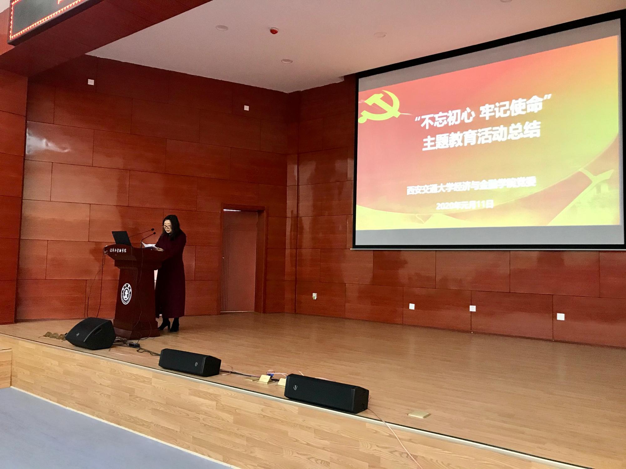 1月11日下午,经金学院在财经校区东配三报告厅召开“不忘初心、牢记使命”主题教育总结大会,全院教职工参会,学校第十指导组申小莹组长到会指导,学院党委周建伦副书记主持大会。