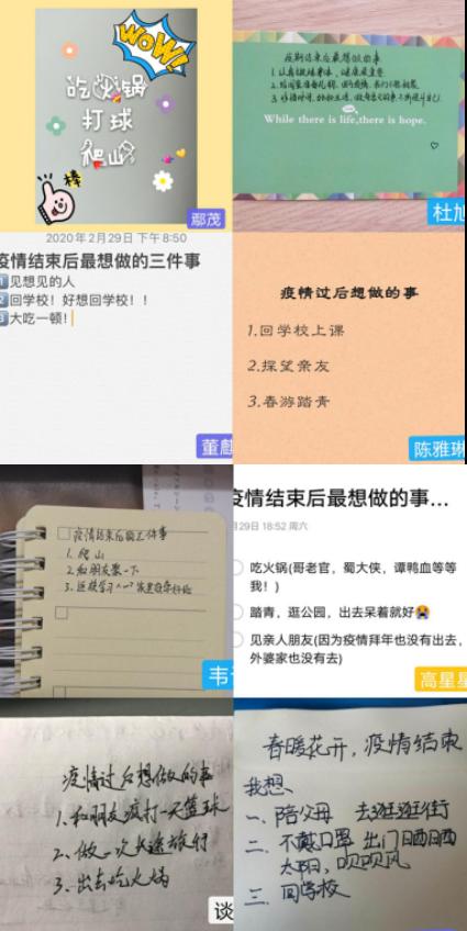 在会议最后,大家将自己在疫情结束后最想做的三件事进行了展示。
