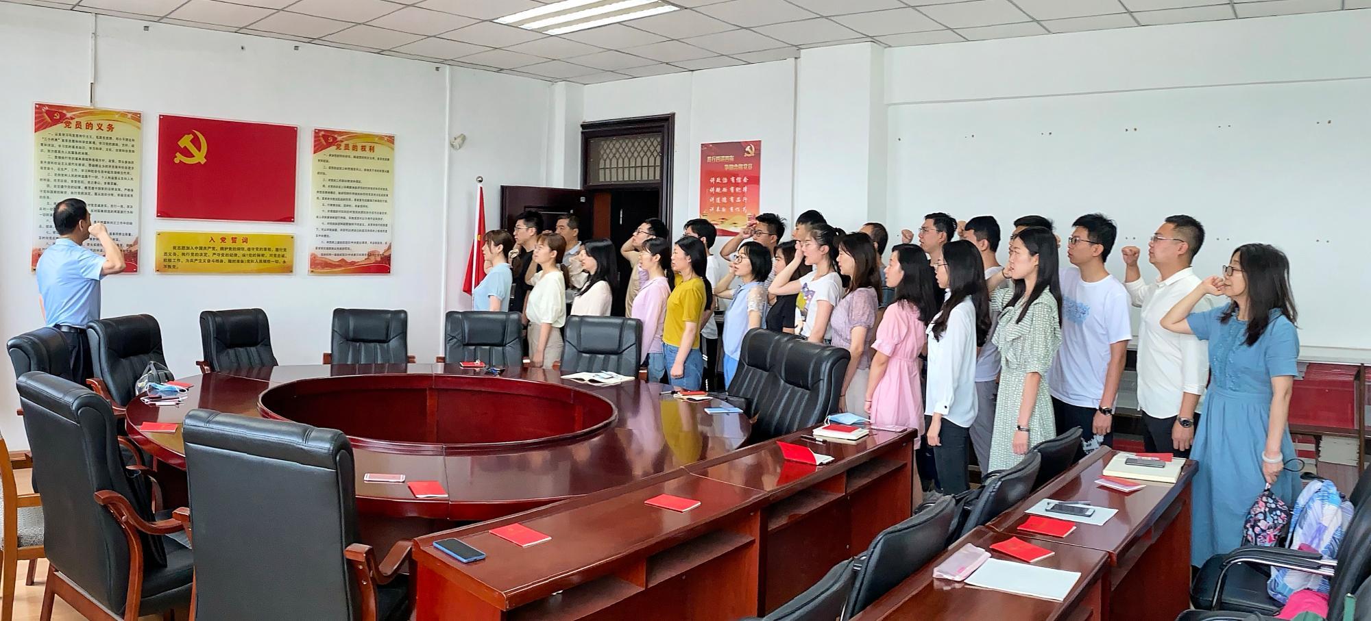 为庆祝建党99周年, 7月1日,经金学院党委组织了新发展的师生党员,在学院党员之家举行了入党宣誓活动。院党委书记宋丽颖、党委副书记周建伦、辅导员王平、党务秘书周可心老师参加宣誓活动。活动由周建伦副书记主持。