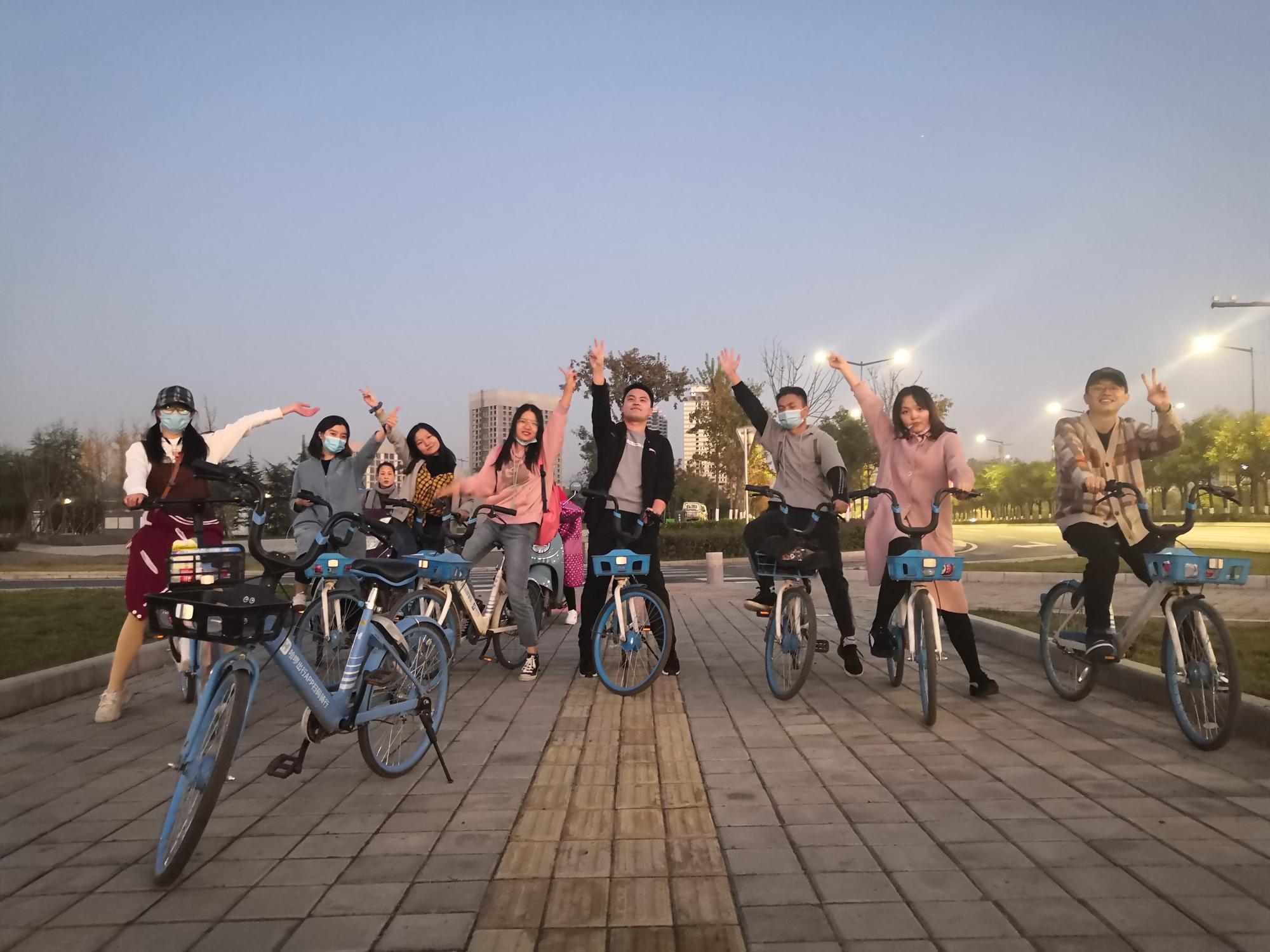 在到达离创新港最后一公里的位置后,同学们再次鼓足信心、全身充满了力量,一鼓作气最终到达创新港。同学们说:这对我来说是自我的一次突破,非常有意义,在这次“骑行奔港”,“接力西迁”的活动中,我们深刻体会到了老一辈的“西迁精神”,不论在今后的学习和生活中,我们都会将这种精神传承发扬下去。11名同学因此也结下了深厚的友谊。