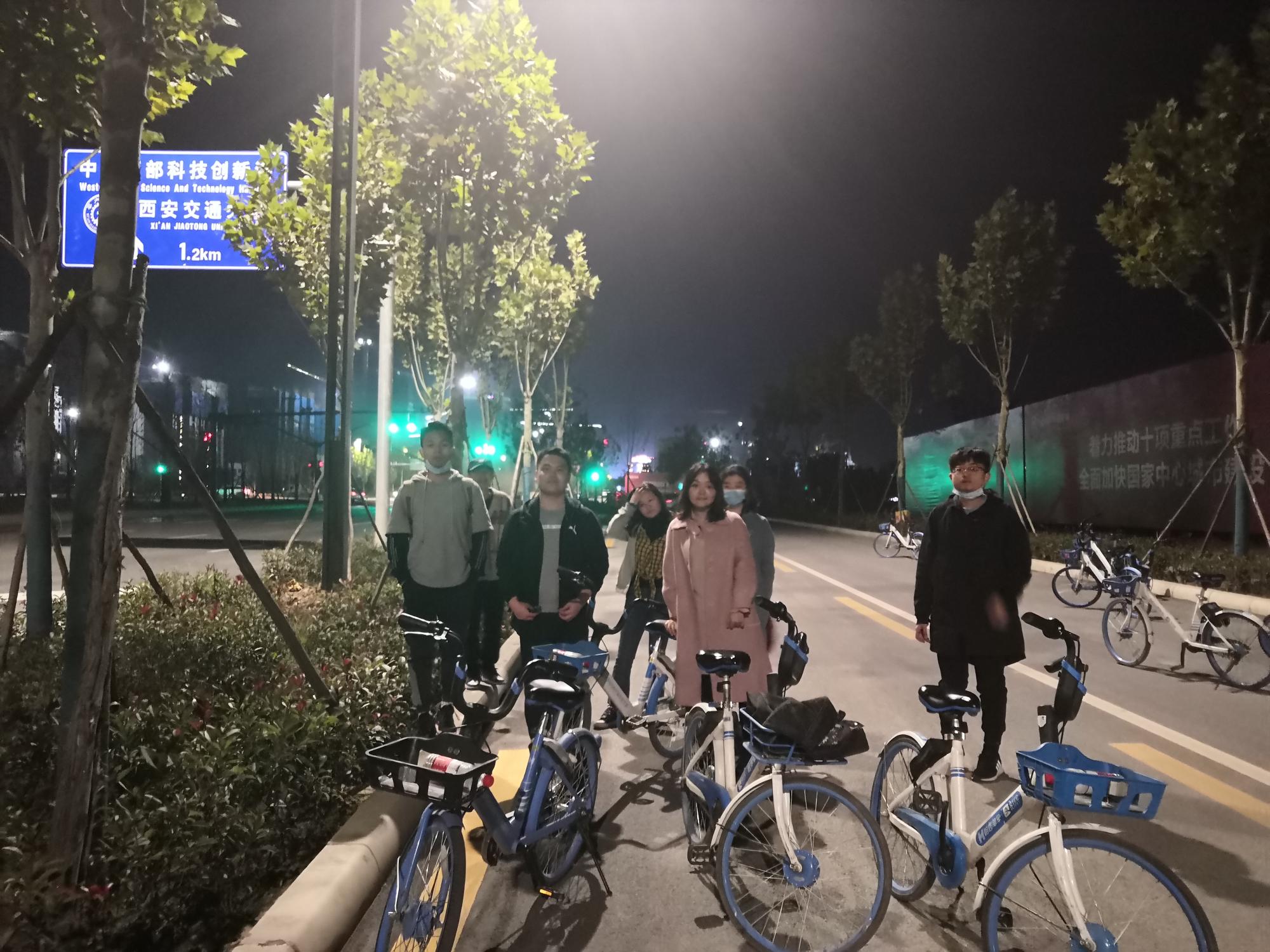 1956年为了改变旧中国遗留下来的高等教育布局分布不合理的现状,支持西部社会经济发展,交大主体从黄浦江畔西迁至兴庆宫旁。近年来,交大再次西迁逐步搬迁至创新港,创新港是交大的第二次西迁,第三次创业。为了切身感受“西迁精神”,硕0161班团支部于2020年11月6日举办“骑行奔港,接力西迁”团日活动。11名S0161班同学从西交大兴庆校区出发骑行奔向中国西部科技创新港,在大家的互相鼓励、互相支持下,11名同学凭借着坚持不懈的毅力完成了三十五公里骑行之路。