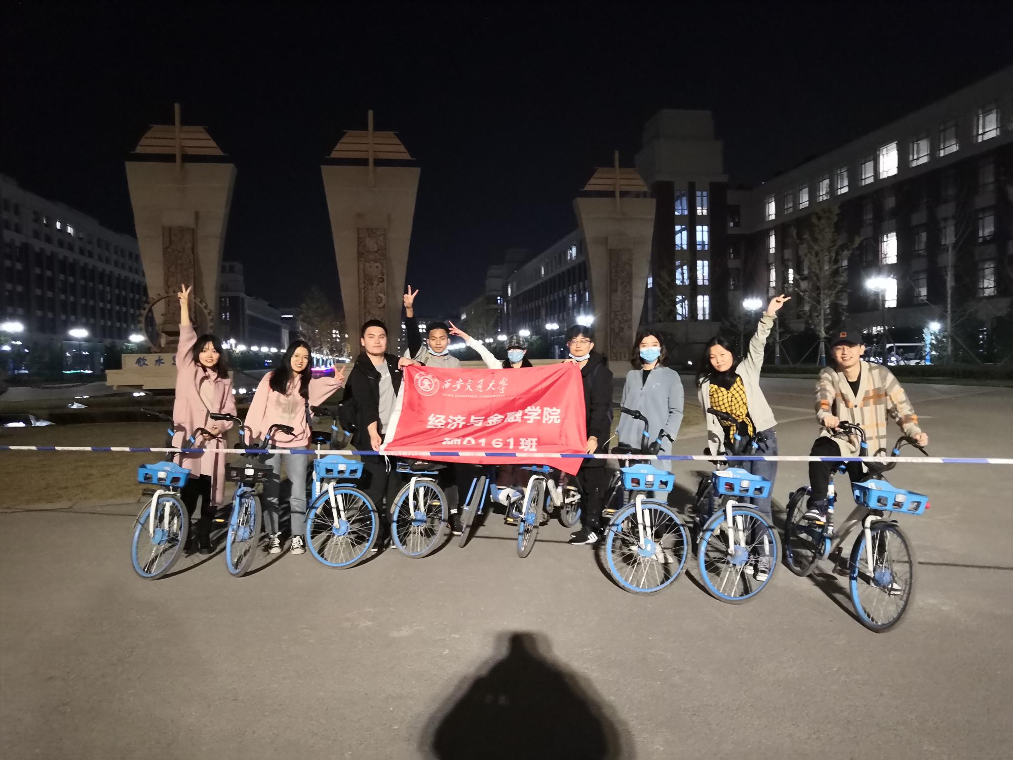 本次活动S0161班11名同学从兴庆校区出发一路向西沿着咸宁西路—环城南路—丰庆路—丰镐路—红光路—沣东大道直至创新港,全程近三十五公里,11名同学从15点半开始骑行,历时近四个小时,最终从市区骑到郊区,从天亮骑到天黑,一路上11名同学互相打气、互相鼓励,即使同学们的大腿开始出现酸痛,体力逐步不支,但是同学们想到西迁老教授们放弃优越的环境支援大西北时遇到的千险万阻,我们这又算得了什么辛苦,于是大家谁也不愿放弃,有同学甚至放出豪言:今天只要车轱辘还在,我就一定骑的回去,另一位同学又说今天车就算坏了,我拖着车也要到达创新港。同学们这种不服输、不放弃的精神正是在感悟“西迁精神”中践行“西迁精神”。