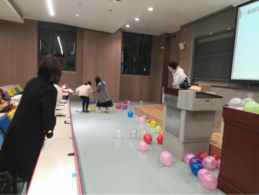 其次,此次主题会与趣味娱乐相结合,让每一位同学积极参与到活动中来。刘帅担任游戏部分的主持人。通过组队的方式和背靠背夹气球、踢毽子的游戏形式,同学们在团队竞技中释放压力,交流情感,失败的队伍从箱子中随机抽出同学们的烦恼并提供自己的解决办法。主题会达到高潮。这不仅让同学们开怀大笑,进一步加深了彼此间的感情,体会到合作的重要性,更是一场心与心的交流。
