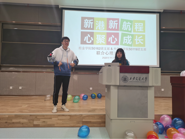 硕0162党支部与外国语学院硕0119党支部于11月4日在涵英楼5—1E103联合开展了以“新港新航程,心聚心成长”的心理主题会。主题会由硕0162班心理委员刘帅和硕0119班心理委员张新怡主持。