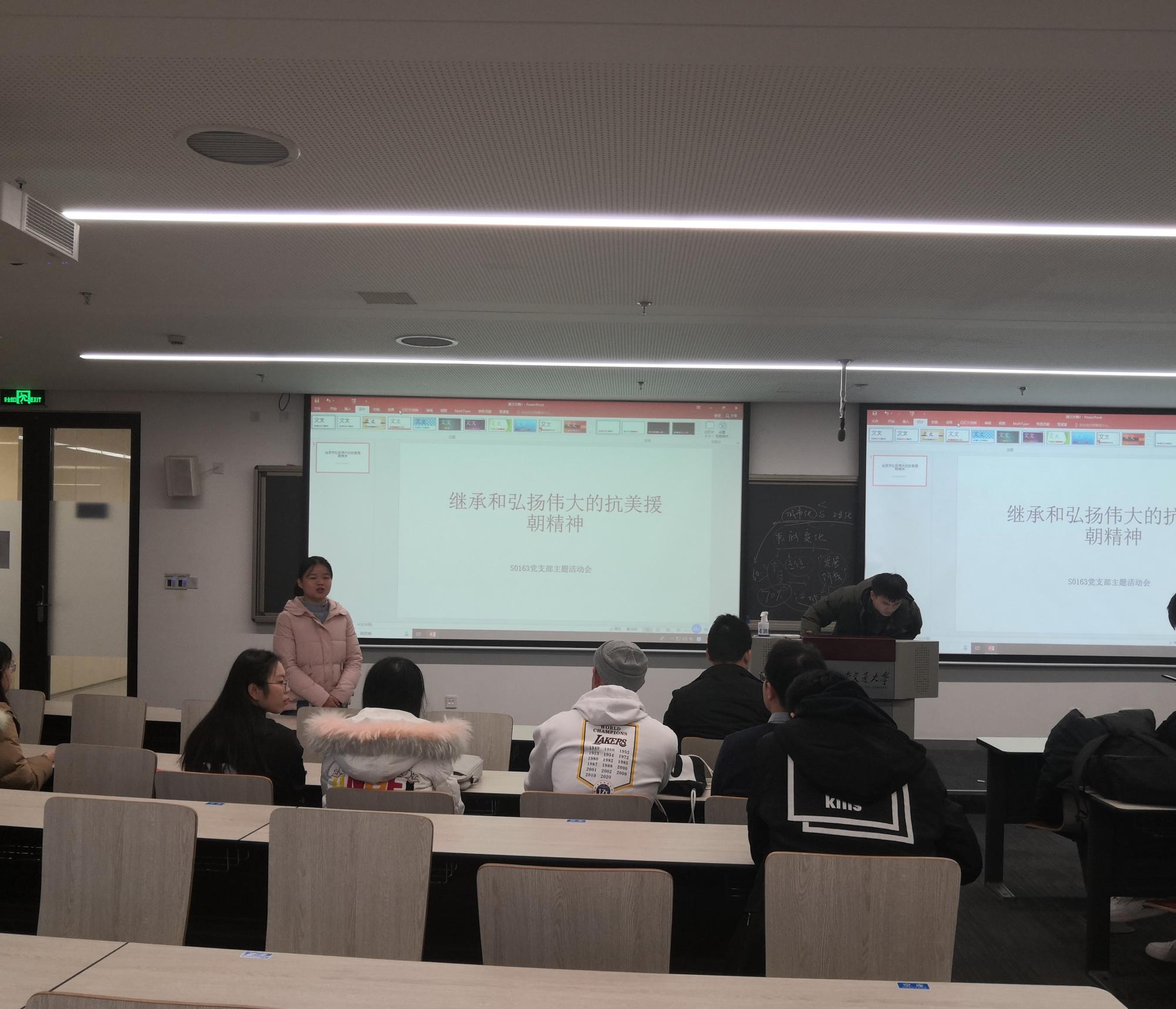 为纪念中国人民志愿军抗美援朝出国作战70周年,继承和弘扬伟大抗美援朝精神,激励青年党员为居安思危、锐意进取,硕0163党支部于12月4日上午,开展了以“继承和弘扬伟大的抗美援朝精神”为主题的党日活动。