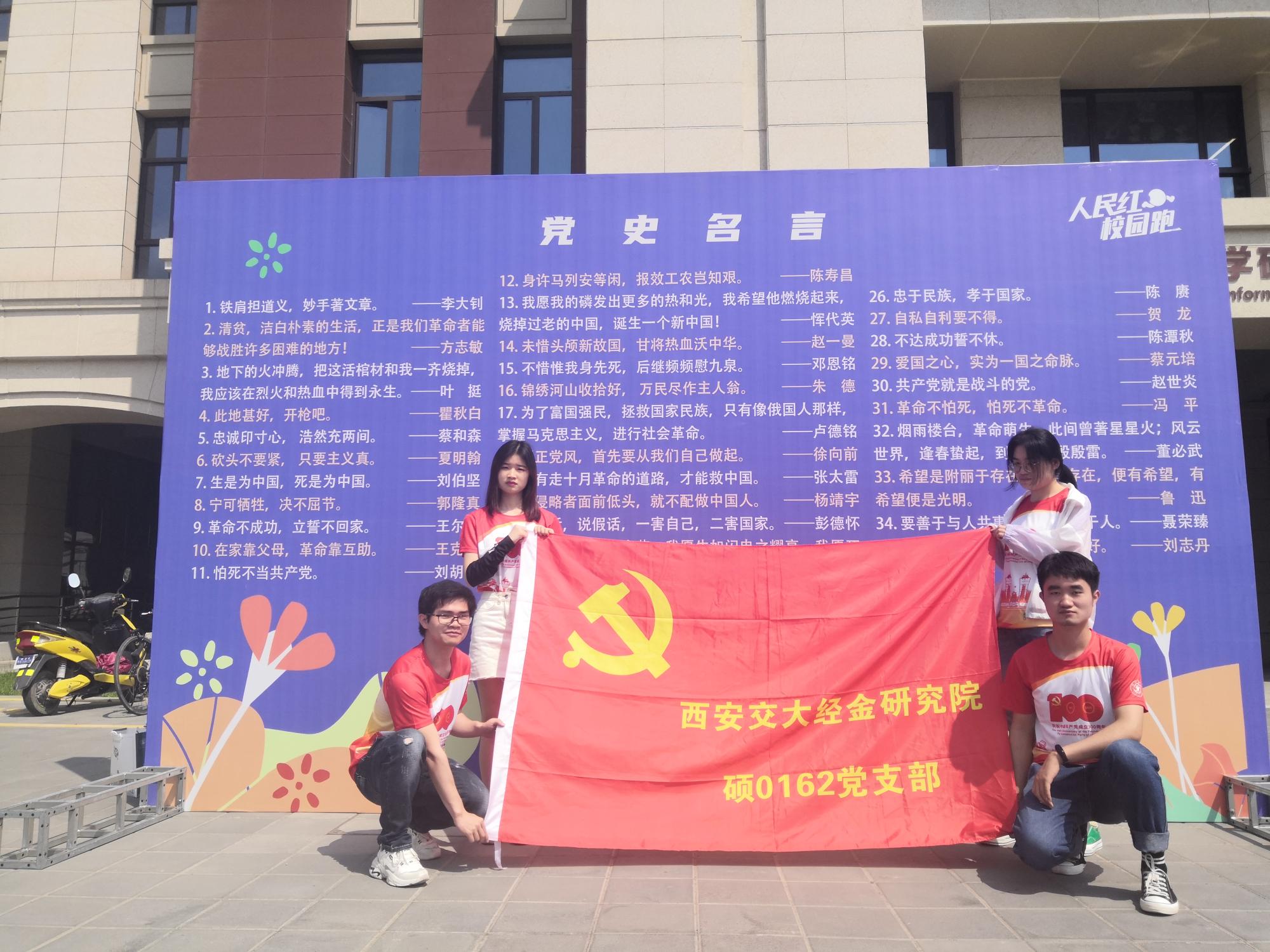 校园红色跑特色活动作为其中的重要一环,不仅表达了交大建校125周年暨迁校65周年以来“听党指挥跟党走,与党和国家、与民族和人民同呼吸、共命运”的深刻思想,还在实践中宣传回顾了我们党百年来走过的光辉历程。为了重温西迁精神和学习党史,为了响应学校及学院党委号召,硕0162党支部成员积极参与到校园红色跑及志愿服务工作中。