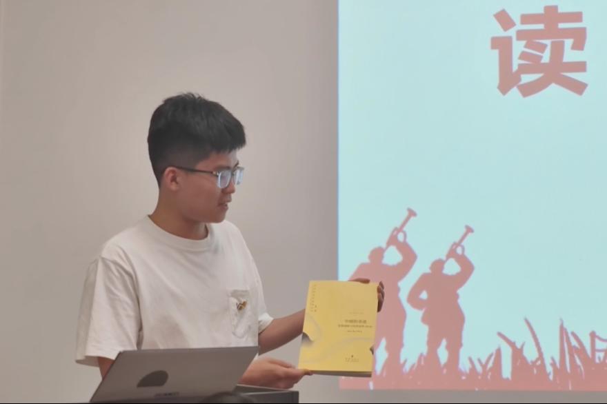随后,郑安宁分享了《习近平与大学生们》一书的感悟,她从习近平总书记与高校学子们“接地气”的谈话中了解到总书记十分亲民的一面;聂帅分享的是《习近平的七年知青岁月》中习近平总书记“带领村民打坝”、“帮村里办沼气”的两则小故事,体现了习近平总书记敢为人先、能办实事的优秀品质,她说我们国家正是有这么一群热爱国家并为之奋斗的人,才能有如此快递发展;陈旭阳分享了金庸的名篇《射雕英雄传》,从主角郭靖淳朴率真的品性和最终破虏而死的结局引申到每个人心中的英雄主义,进而又联想到自身相比抗日英雄精神意志的不足,鼓励支部成员们不囿于自己和英雄之间的差距,努力成为心目中想成为的那个人。