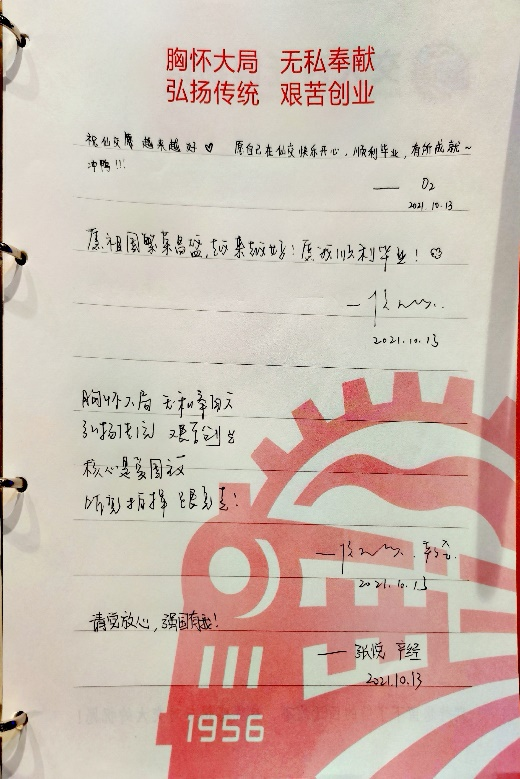 谈及如何传承好西迁精神,张帅说“要在爱国的集体里,做乐观的英雄”;侯雨欣则认为搞好学习才是前提;崔超表示身为产业经济系的学生,我们要紧紧围绕专业特色,以解决社会热点为导向,把论文写在祖国大地上。