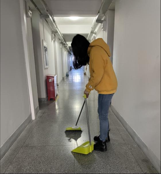 为展现大家劳动包干的决心与热情,1158班当即决定打扫财经主楼四层。支部书记统筹,各委员带领着自己的组员分片打扫,全体同学在党员的表率作用下干劲十足,扫地、拖地、收拾桌椅板凳、摆放清洁工具,一会儿功夫就将所负责区域打扫干净。
