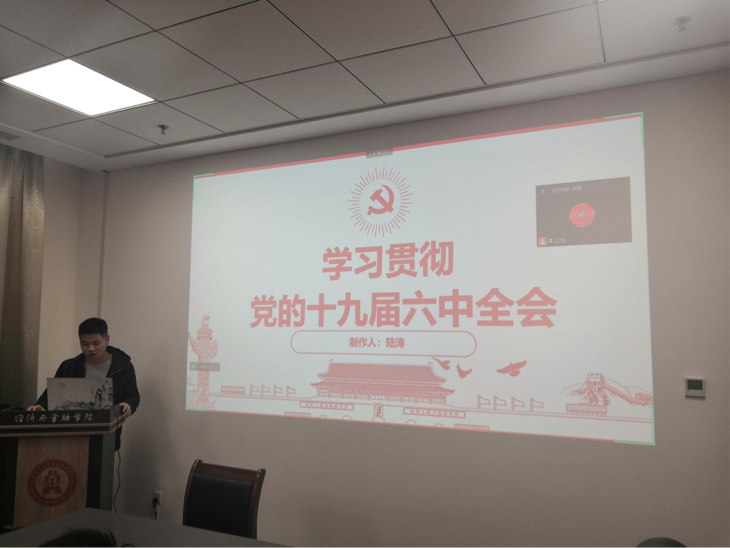 随后会议进入第二项,陆涛同志通过“十九届六中全会会议介绍”、“为何总结党的奋斗的重大成就和历史经验”、“中国共产党百年奋斗的历程”、“百年奋斗的历史意义及宝贵经验”和“十九届六中全会三方面要求”五个专题的讲述带领我们回顾了十九届六中全会会议重点内容,并结合实际讨论我们当代研究生的责任与使命。最后全体成员进行学习内容交流与分享,积极发言。贺敬茹同志表示在接受党的教育后,对我党积极性、认同性大幅提高。并且愿意起到先锋带头作用,为国家在第二个百年奋斗目标中贡献青春力量,在历史新征程上展现新时代新青年的新作为。