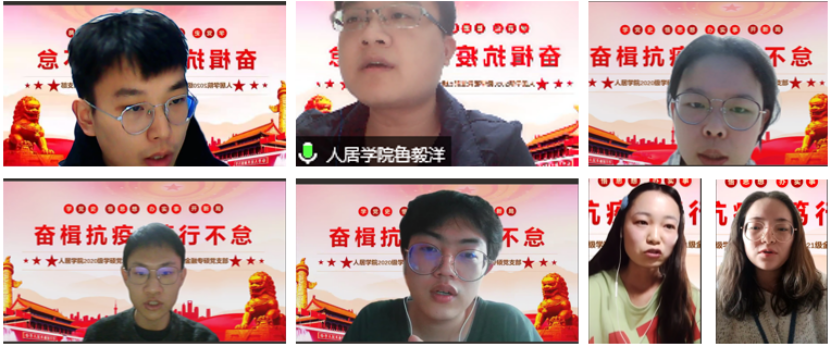 为树立必胜信心,讲好战疫故事,切实发挥党员先锋模范作用,2022年1月15日,人居学院2020级学硕党支部和经金学院2021级金融专硕党支部联合召开“奋楫抗疫笃行不怠”专题组织生活会。人居学院党委书记杨鹏、经金学院党委书记宋丽颖、人居学院研究生辅导员陶泽宇,支部全体党员和入党积极分子参加此次会议。经金学院2021级金融专硕党支部书记李永鼎主持会议。