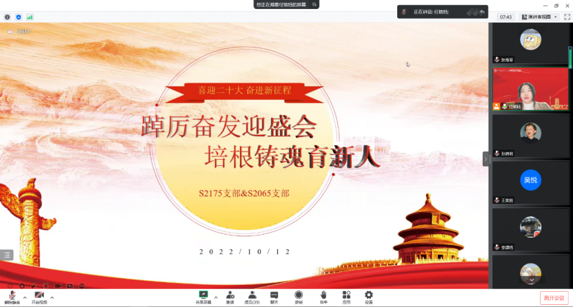 为迎接党的二十大的胜利召开,深入学习贯彻习近平总书记关于青年工作的重要思想和来陕、来校考察的重要讲话精神,强化思想政治教育,深入学习中国共产党人的精神谱系,汲取奋进力量、发挥榜样引领,促进多学科交叉交融交流,2022年10月12日晚,经金学院S2175党、团支部和电气学院S2065党、团支部召开了以“踔厉奋发迎盛会,培根铸魂育新人”为主题的联学共建专题组织生活会。两支部党员、团员代表参会,S2175班任铭钰主持会议。