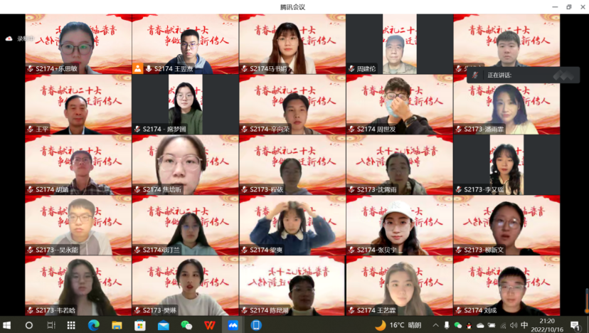习近平总书记在党的二十大报告中指出:“青年强,则国家强。当代中国青年生逢其时,施展才干的舞台无比广阔,实现梦想的前景无比光明。”硕2173、2174党团支部必将坚定不移听党话、跟党走,争做有理想、敢担当、能吃苦、肯奋斗的西迁精神新传人,为全面建设社会主义现代化国家贡献青春力量。