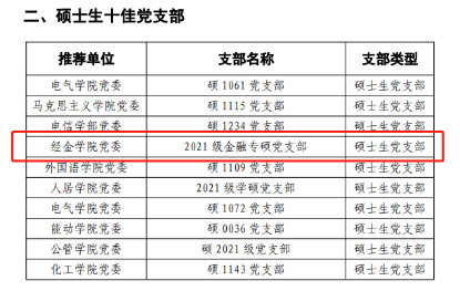 2023年研究生“十佳党支部”与“特色示范党支部”评选活动在创新港圆满落幕,经过材料报送、专家初评、交流展示、决赛评审,我院2021级金融专硕党支部突出重围,荣获研究生“十佳党支部”称号。