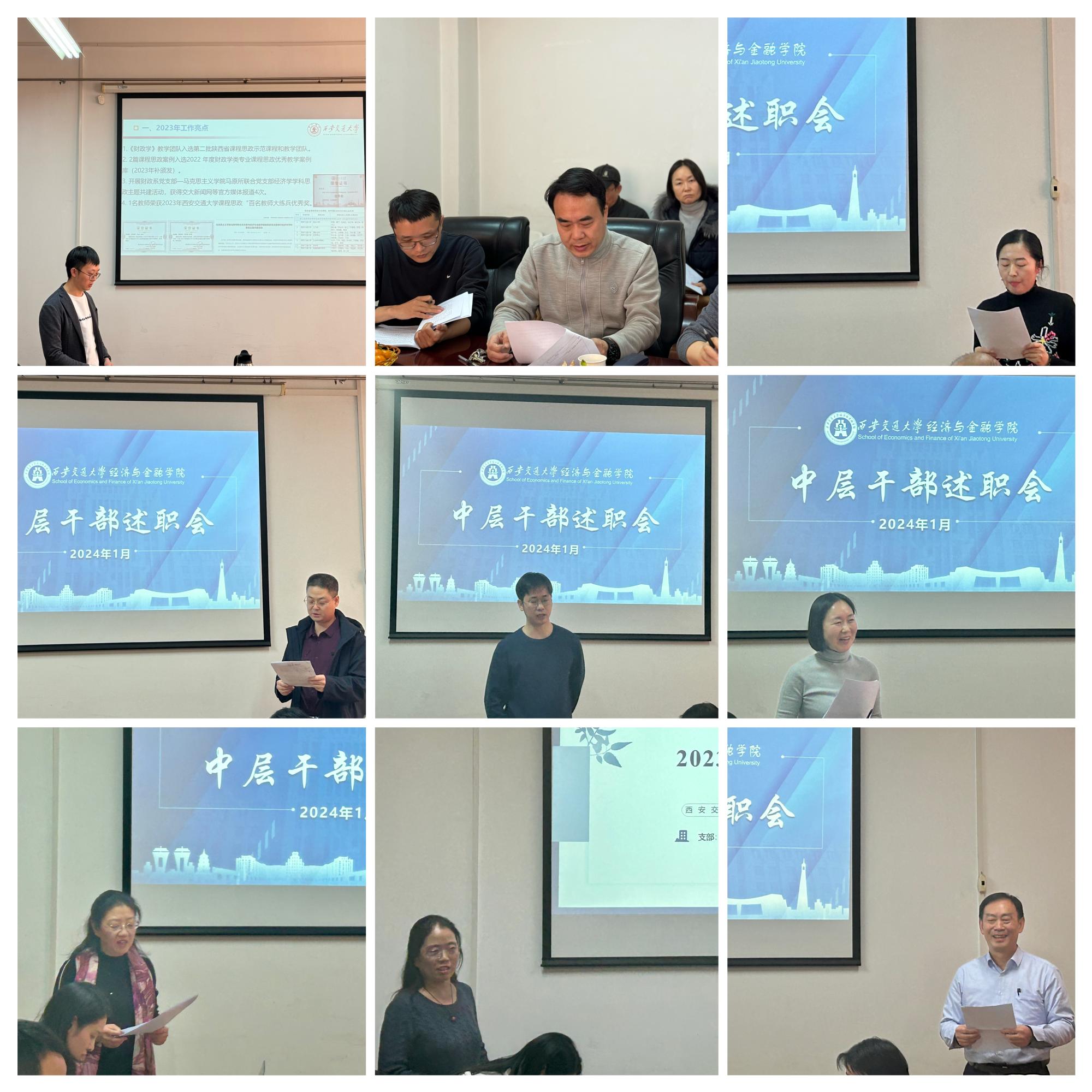 2024年1月10日下午,经金学院召开2023年度中层干部述职评议会。会议由学院党委书记周建伦主持,党政领导班子、教工党支部负责人、系(中心)负责人、部分教师代表参会。