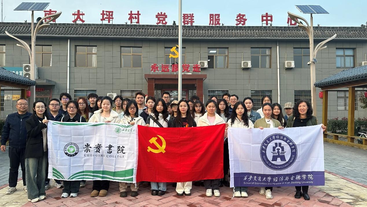 为全面贯彻落实党的二十届三中全会精神,深入学习贯彻习近平总书记关于全面深化改革、推进城乡融合发展的重要论述,实地感知美丽乡村建设成果,进一步加强党性修养和爱国情怀,11月6日,经金学院财政系党支部、经金学院崇实书院师生联合第二党支部34名师生党员前往西安市周至县广济镇南大坪村,与广济镇南大坪村党支部共同开展乡村振兴主题党日活动。周至县广济镇党政领导班子和南大坪村党支部共十余人参加了本次活动。