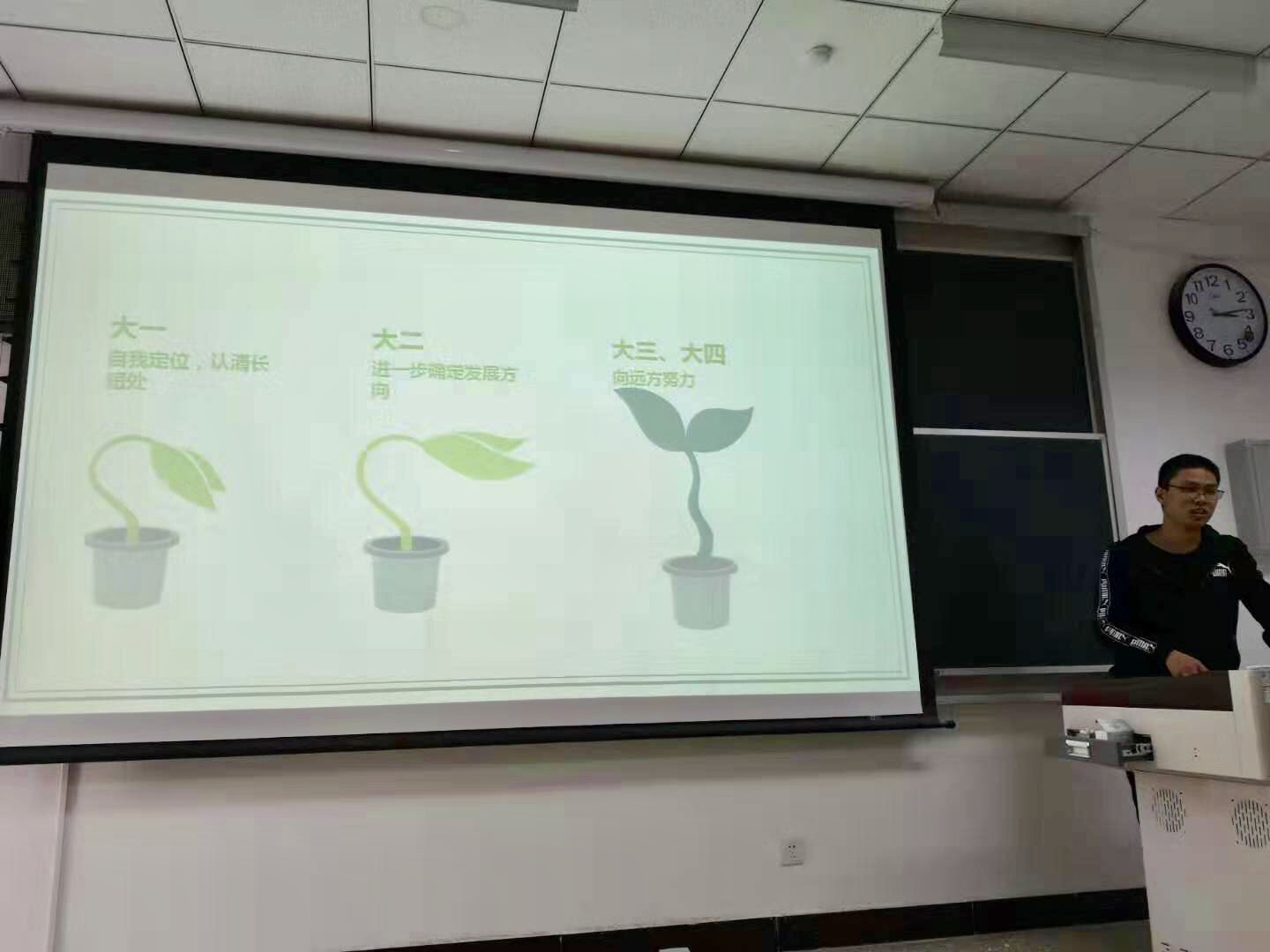 刘帅介绍了自己在学业与实践活动之间的时间管理方法,从“远方—明确人生目标”、“自我—学业与学生活动”以及“方向—心之所向,素履以往”三个方面,详细介绍了自己初入大学校园如何确立人生目标,一步步朝着自己设定的方向努力。高慧敏以“画竹必先成竹于胸”为引,总结了自己参加各类学科竞赛的经验和心得,强调参赛过程中应始终保持平常心,享受比赛过程,实现效用最大化。张学智分享了自己对大学不同阶段的理解:大一要自我定位,认清自己的优势和不足;大二要进一步明确未来发展方向,决定分流专业;大三、大四则应该脚踏实地,朝着自己心中的远方前进。