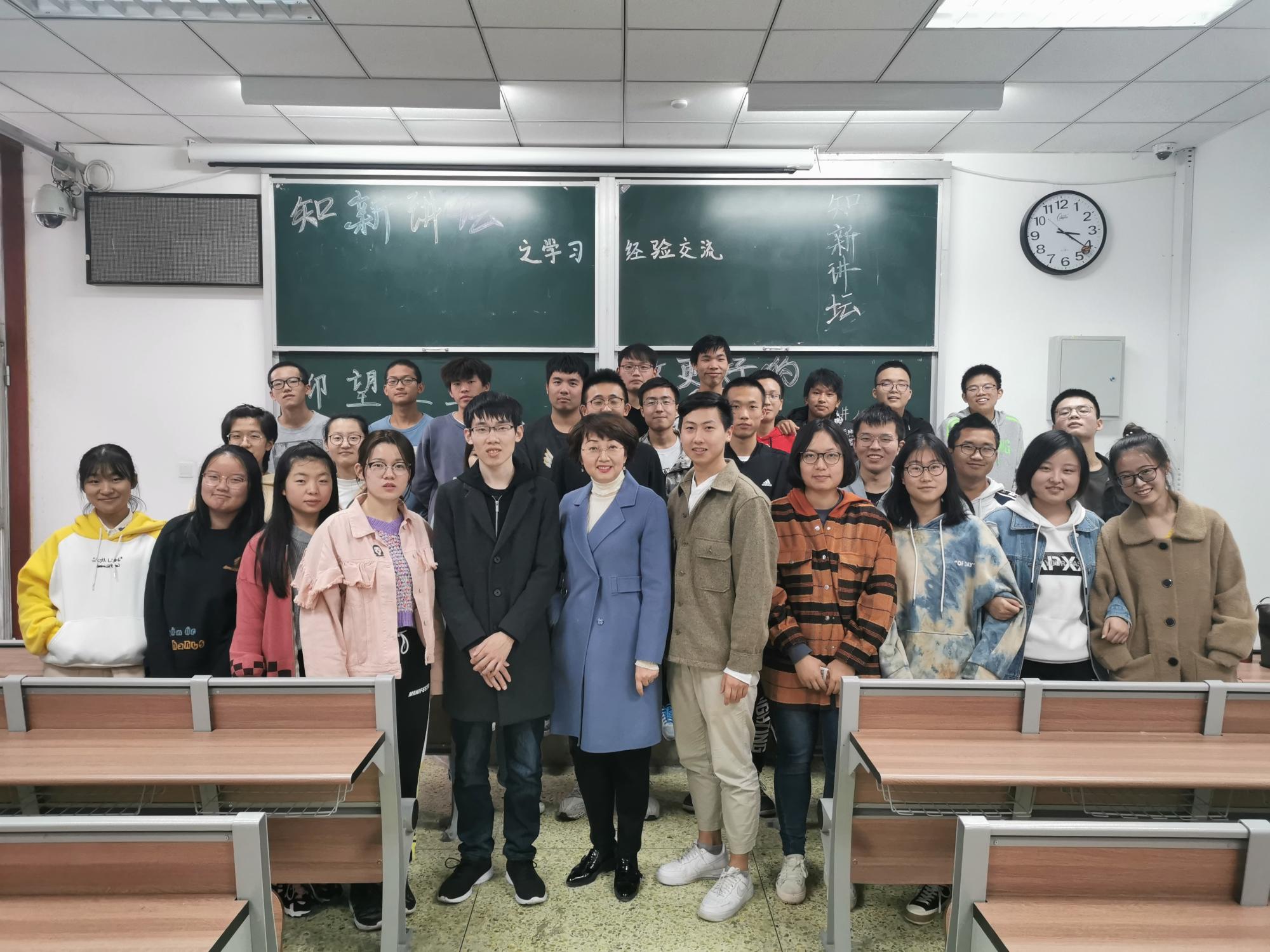 2019年11月4日,第四期“知新讲坛”之学习经验交流会如期在西配楼102举行。经济94班班主任贾小玫副教授主持,2016级经济学专业陈杨(保研北京大学软件与微电子学院)和周泽昊(保研漫蛙漫画