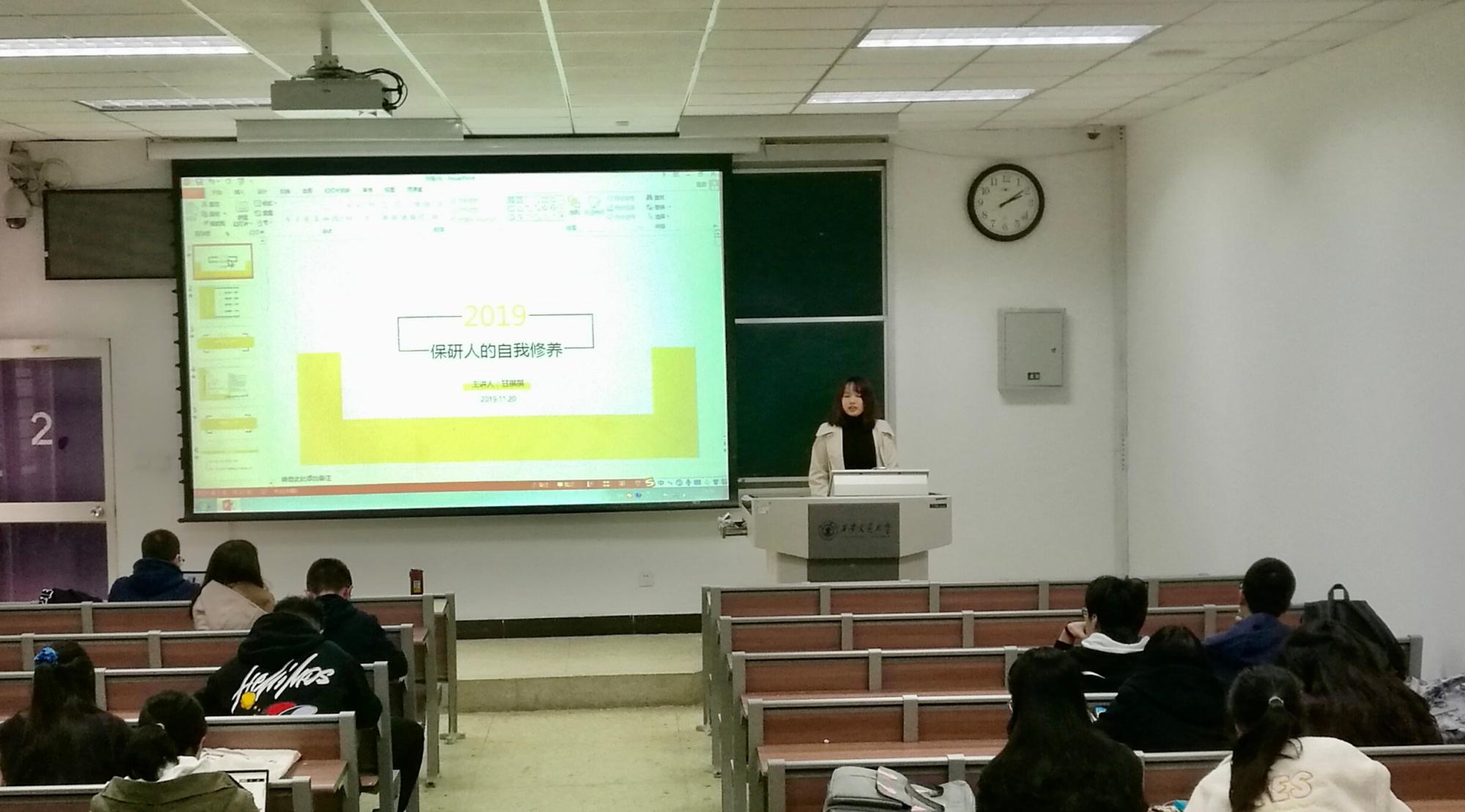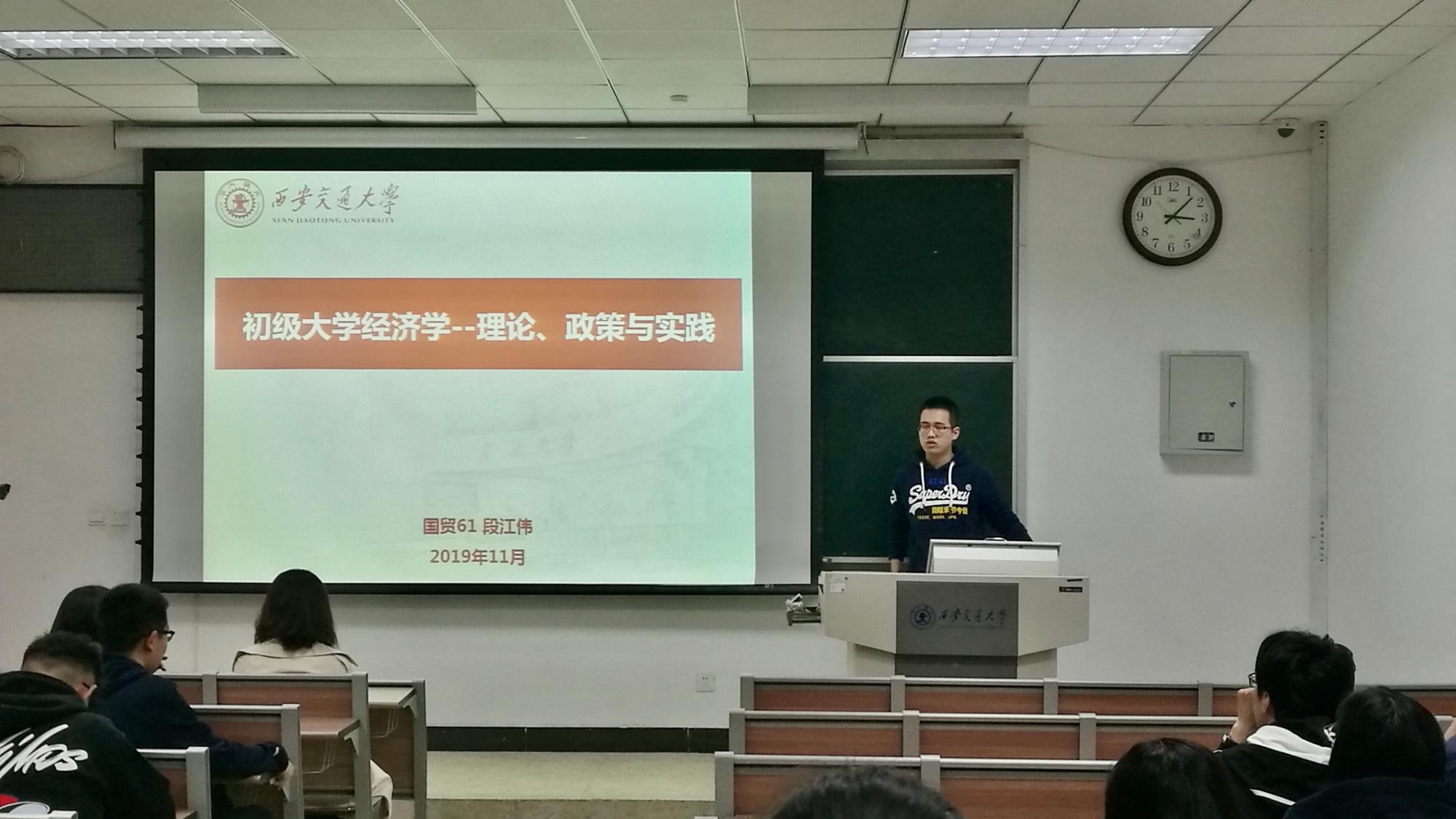 2019年11月20日,第六期知新讲坛系列活动在西配102举行,经济910班主任杨万平副教授主持本次学习经验交流会。2016级国际经济与贸易专业甘祺祺(保研至中山大学岭南学院)、段江伟(保研至漫蛙漫画