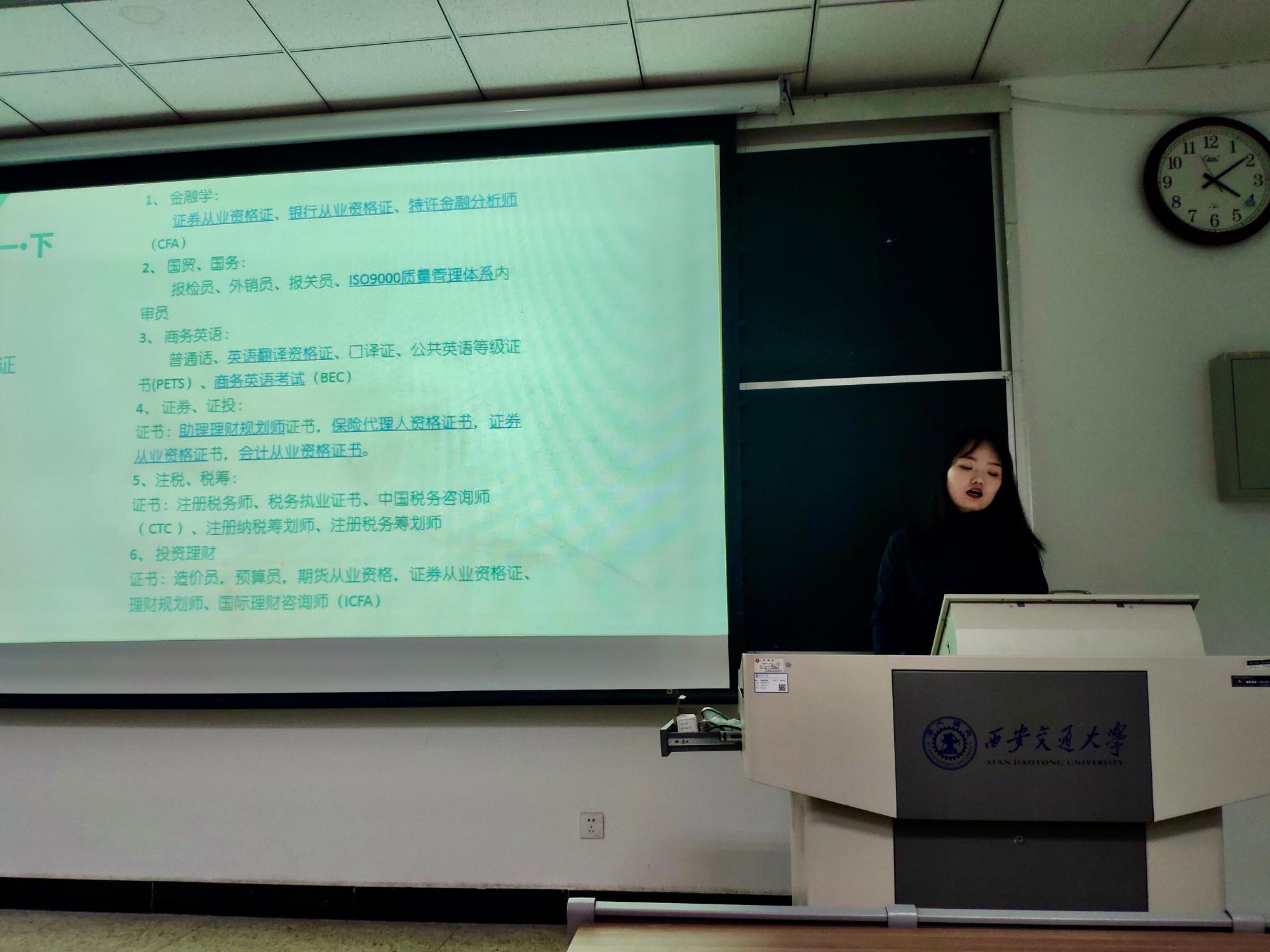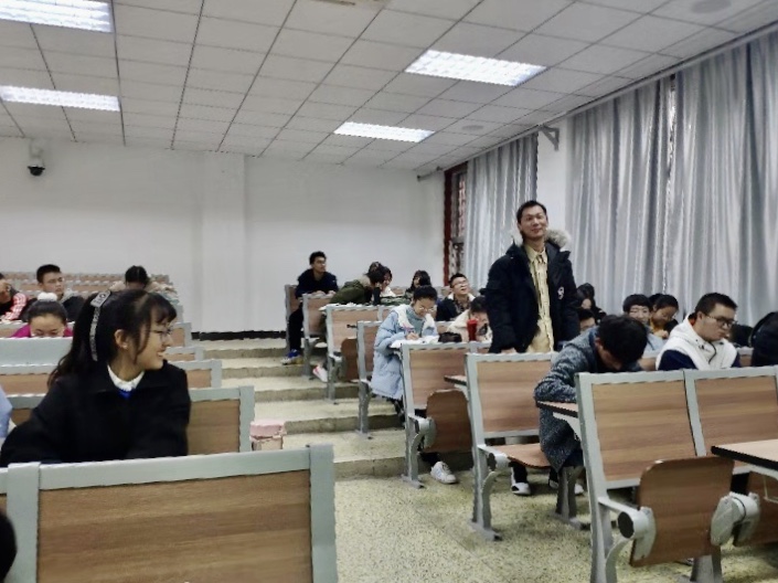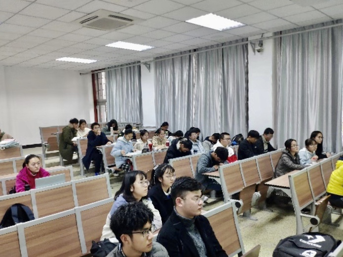 2019年11月26日下午,第七期知新讲坛系列活动在西配102举行。经济86班班主任徐晓瑜老师主持, 2016级电子商务专业余昕杰(保研中国科学院大学经济与管理学院)与全艳叶(保研漫蛙漫画