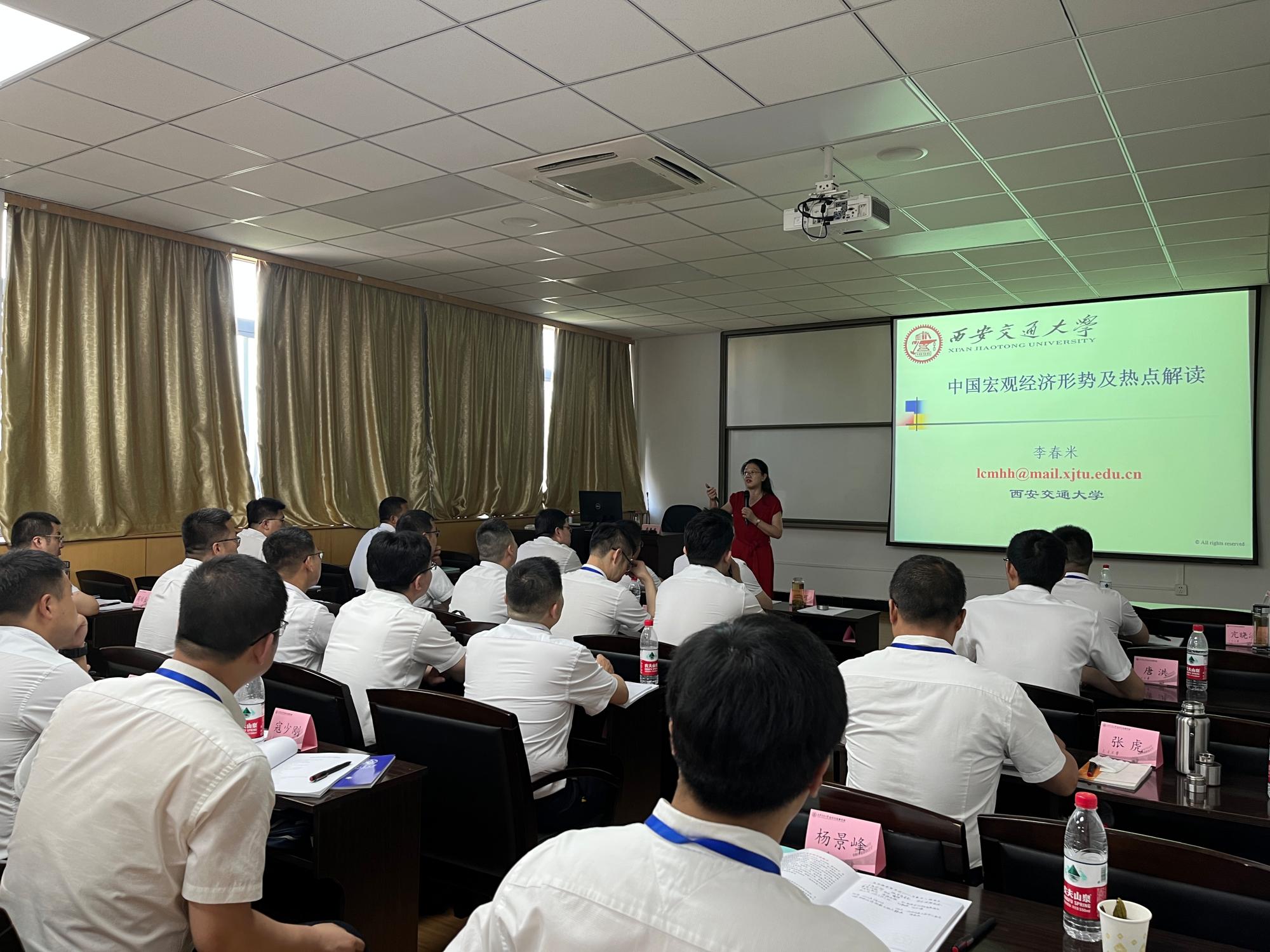 经济系党支部书记、教授、硕士研究生导师李春米,陕西省团校理论研究部主任助理,副教授,硕士研究生导师宋利国。为全体学员进行《宏观经济形势分析与热点问题解读》与《习近平总书记关于青年工作的重要思想解读》课程的首次讲授。