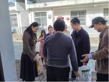驻村扶贫队员,并走进贫困户家中进行慰问,仔细询问他们的身体状况、家庭收入,送去米面油等慰问品。