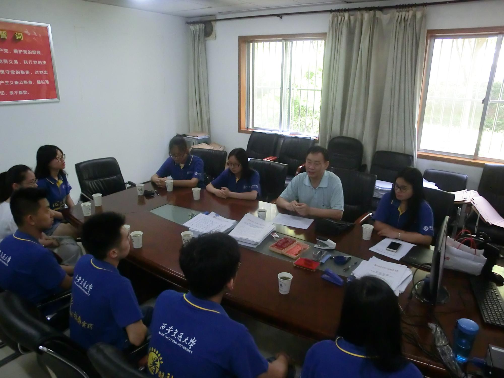 王老师还同长安区政府办公室干部王丽萍同志进行了交谈,希望区政府同志们对我校学生在工作中若出现了问题要及时指出并给予批评,以帮助学生快速成长。王丽萍同志非常感谢学校老师前来看望见习学生并关心同学们的见习情况,她说交大同学的素质高、学习能力强,得到了周围干部职工的一致好评。