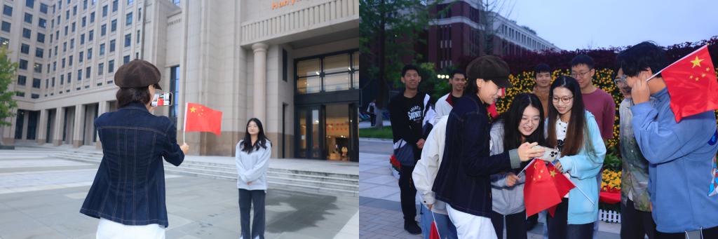 活动期间,硕5188全班同学共同策划、积极参与,录制了“旗递山河,情传四海”主题视频。镜头前,同学们手持国旗,用饱满的热情和真挚的语言,表达对祖国母亲的深切热爱与美好祝福,展现了西交学子昂扬向上的精神风貌和将个人成长融入国家发展的坚定决心。这一创意形式有效激发了同学们的参与热情、强化了活动育人效果、凝聚了班级的向心力,展现了硕5188班集体浓厚的爱国氛围与积极向上的青春风采。