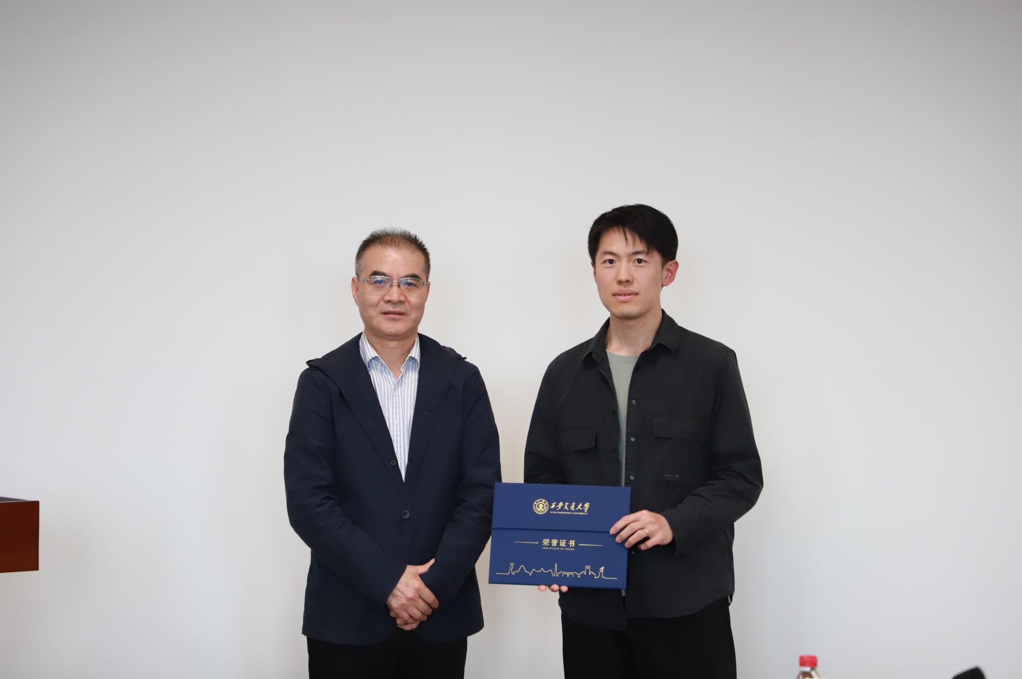 吴建斌校友为2022-2023学年获得“校友剑冰奖励基金”的6名本科生、6名硕士生、3名博士生以及冯晨副教授颁发了荣誉证书。获奖学生代表朱静锐、任铭钰、姚昱彤对吴建斌校友无私捐赠的善举表达了诚挚的感谢和深深的敬意,纷纷表示今后将以吴建斌学长为奋斗榜样,明德于心,感恩于行,不断赓续百年交大“饮水思源”的文化基因,始终传承和发扬“西迁精神”,争做立大志、明大德、成大才、担大任的时代新人。