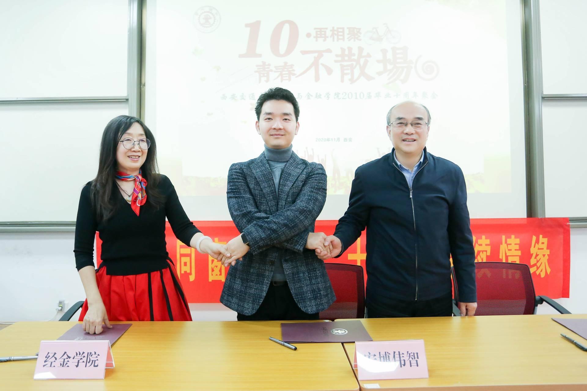 党委书记宋丽颖、副院长温军、校友办公室负责人任小静,启德书院党总支书记、主任张王民出席了座谈,座谈由吴发灿老师主持。经过近两个小时的亲切交流,经金、启德、宏博三方在未来的技术创新、信息资源共享、联合人才培养(实践)等方面达成了初步的合作意向,并在全体校友的见证下签署了合作意向框架协议书。