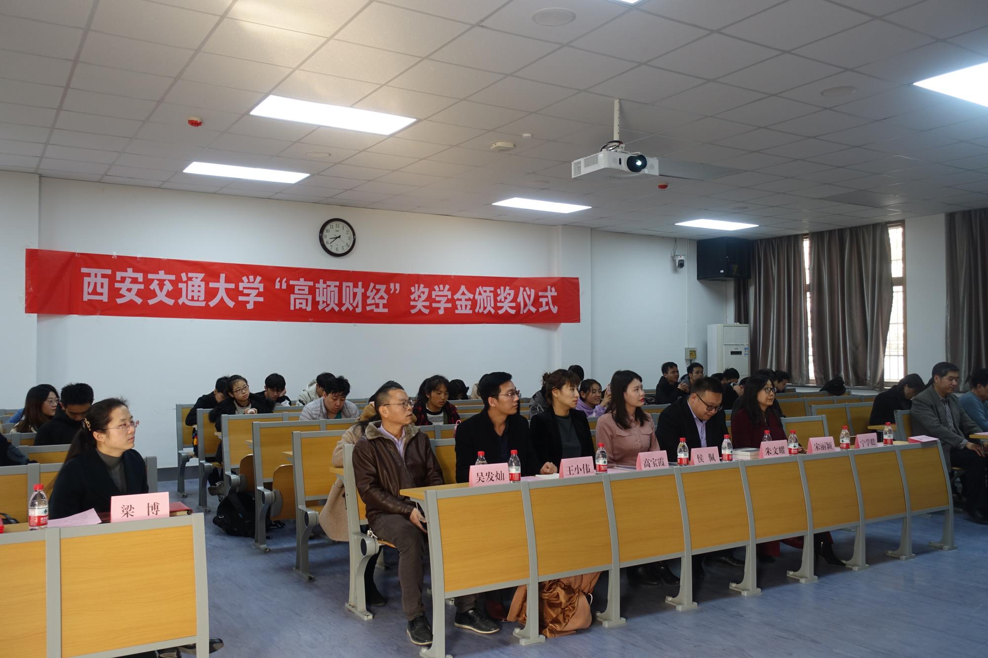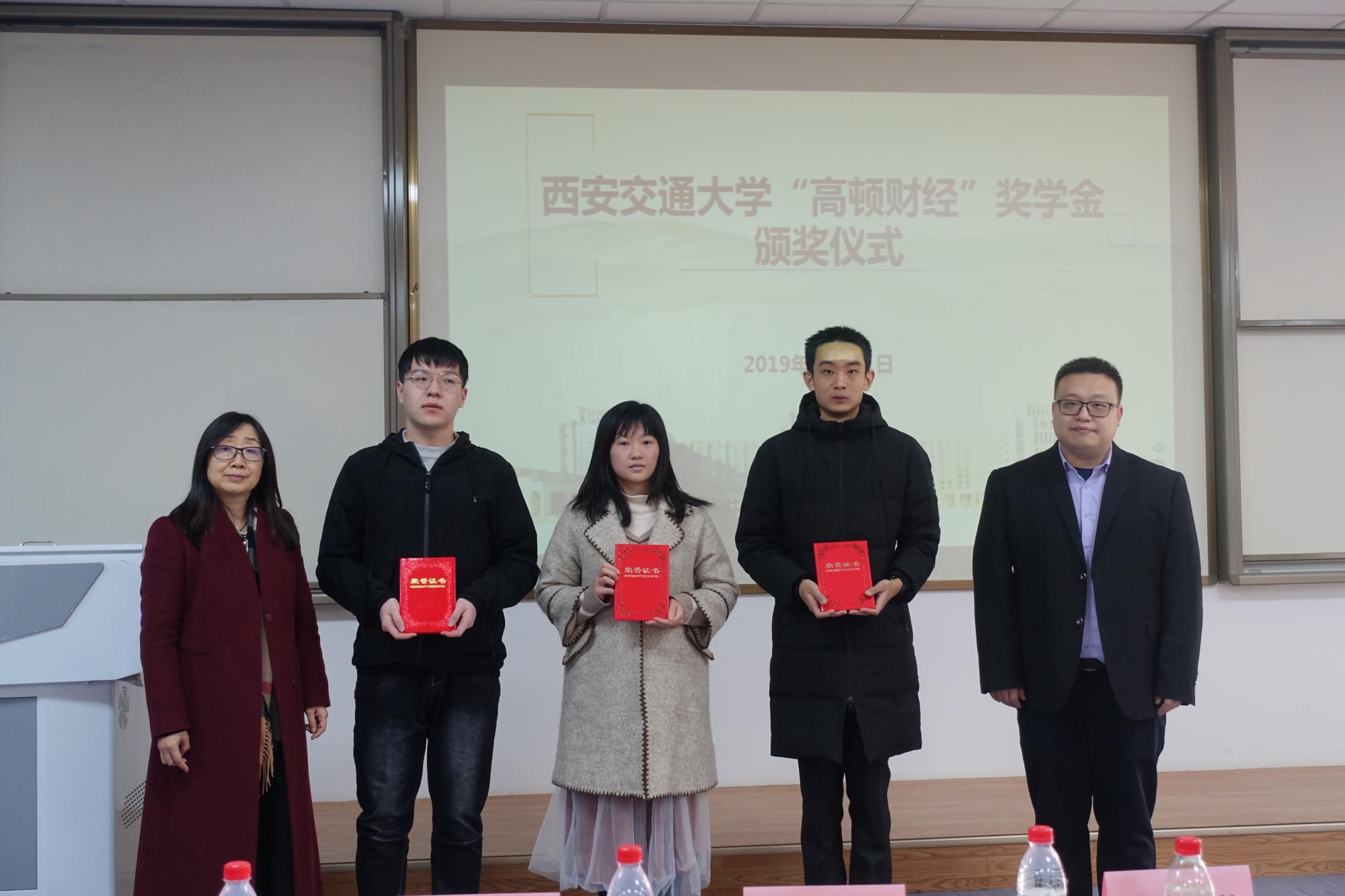 “高顿财经”奖学金颁奖仪式在财经东配二楼举行。高顿教育集团领导、经金学院、启德书院和宗濂书院领导以及辅导员老师出席仪式,并为在名企实习、国际名校研学、大学生创业、社会实践四方面表现突出的11位同学以及5个团队给予表彰奖励。颁奖仪式由经金学院周建伦副书记主持。