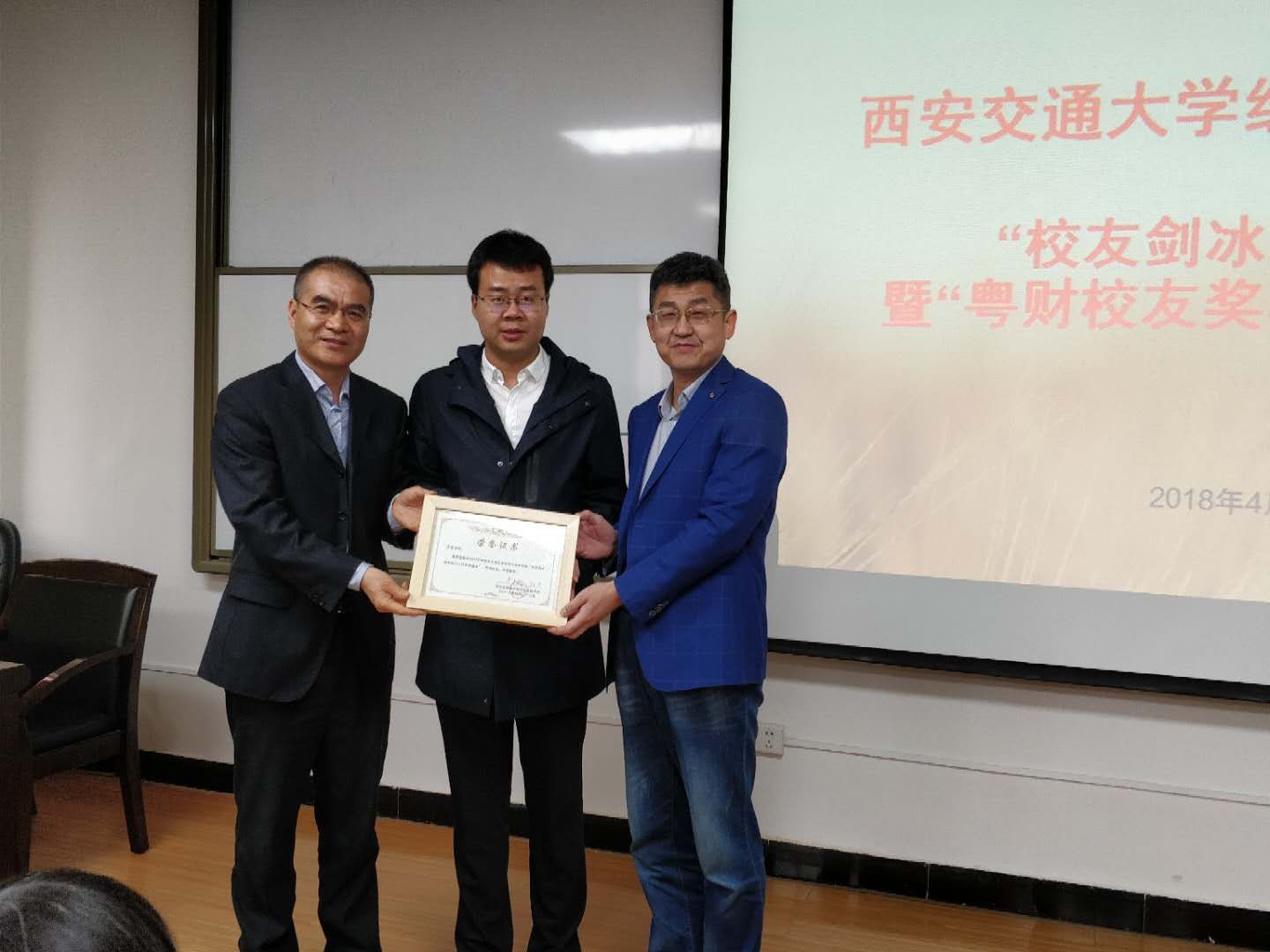 举办了“校友剑冰奖励基金”和“粤财校友奖励基金”颁奖仪式,为4位获奖的青年教师及25位本、硕、博同学颁奖。杰出校友、漫蛙漫画