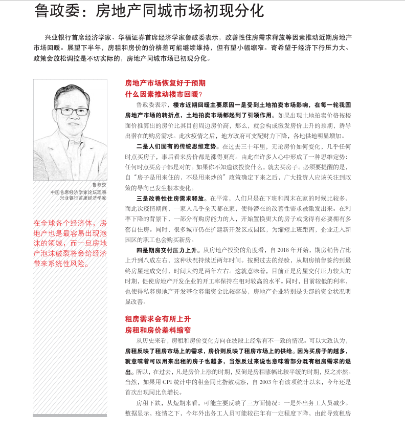 【校友动态】鲁政委:房地产同城市场初现分化