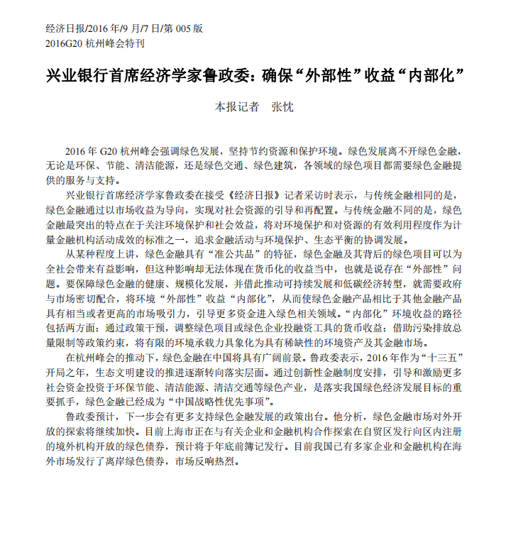 【校友动态】鲁政委:确保“外部性”收益“内部化”