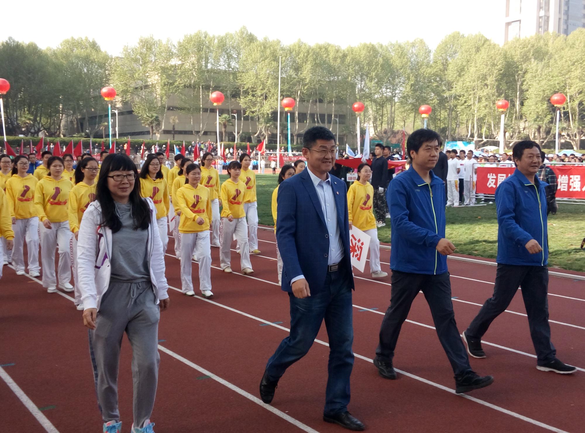 4月14日清早,温暖的阳光,第55届校运动会正式开幕。在宋丽颖书记、孙早院长等院领导的带领下,经金学院师生方阵仪仗队手举“深化两学一做 争创学研一流”字牌,高喊“经济雄风,勇攀高峰,金融风采,纵横四海”的嘹亮口号,迈着矫健的步伐走入会场,他们精神饱满、意气风发。