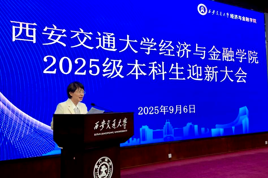 孙早对全体2025级新生表示热烈欢迎,并通过丰富的事例、生动的语言,向同学们阐释了西迁精神的家国情怀和经邦济世的学术精神。他从经济学的学科特质出发,强调经济学在人工智能时代不仅未被削弱,反而因其关注人的决策、资源配置与科学预测而更具价值。他解读了学院“财经为体、理工强基、知行致用”的办学特色,希望同学们努力成长为一流经济学家、一流企业家、一流公共管理人才。同时,他向新生提出三方面的要求:一是坚定政治方向:在大是大非面前保持清醒,始终心怀爱党、爱国、爱校之情,从西迁精神中汲取力量,将个人成长与国家发展、社会进步、民族复兴紧密结合;二是涵养学术品格:树立学科自信,做到 “选其所爱、爱其所选”,以热爱与好奇心为动力,精勤求学、百折不挠,坚守学术初心;三是提升综合素养:热爱生活、从容处世,学会尊重包容他人,在营造良好学习生活氛围的同时,锤炼品质、全面发展,在追求卓越中不断完善自我。