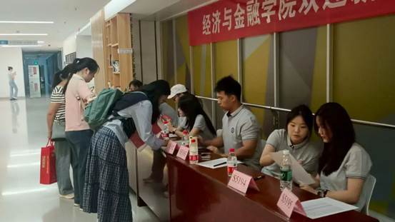学院高度重视迎新工作,以“让新生安心、让家长放心”为核心目标,提前开展周密筹备:一是优化点位布局,在惠园入口、朗园入口及学院大厅三个关键区域设置迎新点位,明确各点位功能分工,提前完成设备调试、流程梳理与物料准备,确保报到登记、信息核对、材料收取等环节高效衔接;二是组建专业服务团队,严格开展志愿者招募与专项培训,明确岗位职责与服务规范,形成“定点值守+动态协助”的服务模式,为新生提供全流程引导支持,保障迎新工作有序推进。此外,为让新生第一时间感受到经金学院的专属关怀,学院特别精心准备了具有学院特色的服装及文创礼品。这份心意不仅承载着学院对新生的欢迎与期许,更希望能帮助新生快速融入经金大家庭,开启充满活力的学习旅程。