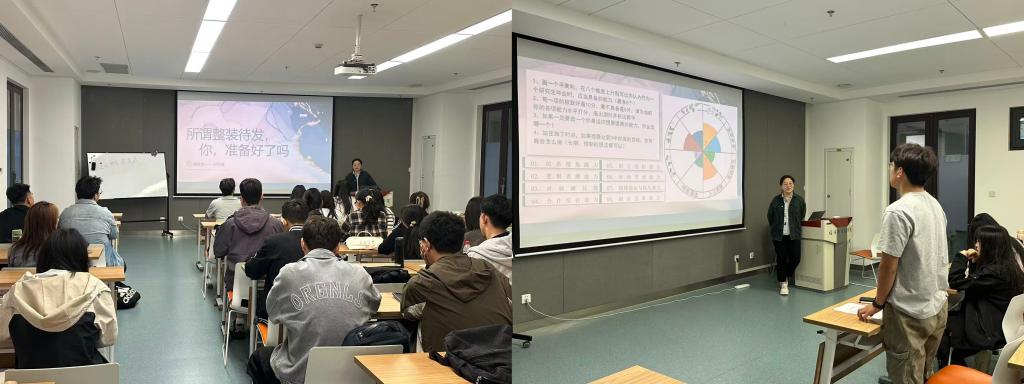 学院研究生辅导员申珂瑗以“所谓整装待发,你准备好了吗?”为题引导同学们思考研究生阶段的发展规划,指导同学们使用目标管理工具“平衡轮”进行自我评估与目标设定,现场作互动交流,内容涵盖信息搜集、逻辑思辨、学术写作、时间管理、沟通表达、团队协作、创新思维和职业发展八个维度。她表示,“平衡轮”不仅能帮助同学们可视化自身能力结构,更能推动大家从“被动接受”向“主动规划”转变,实现从知识学习者到能力建设者的角色转型。