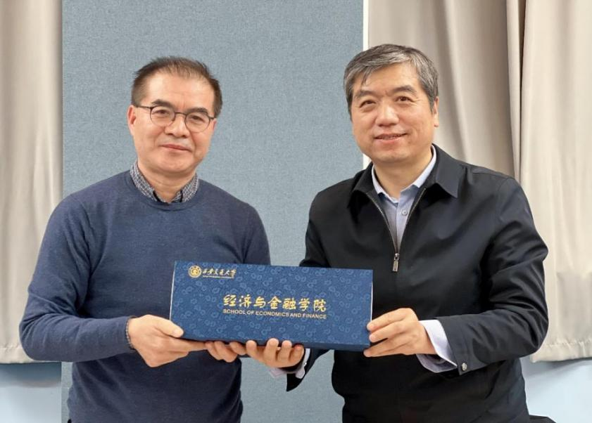 最后,周建伦书记代表学院为建斌校友赠送纪念品。感谢建斌校友对母校做出的贡献。未来,经金学院的每一位师生都将继续努力,为学院的发展建设贡献自己的力量。