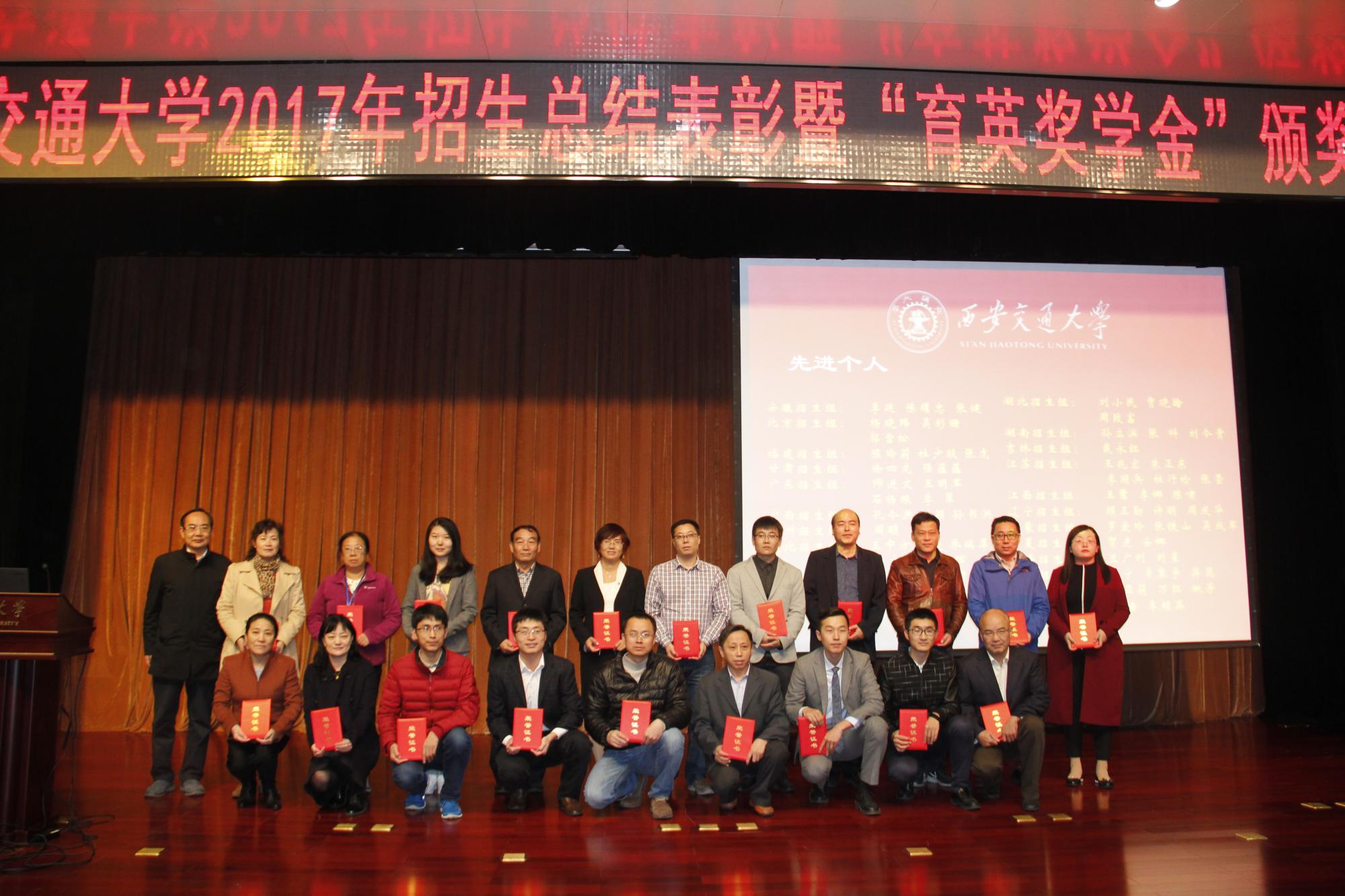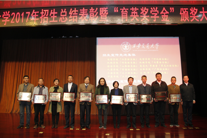 在学院领导的关心支持和招生组的艰苦努力下,2017年经金学院本科生招生宣传再传捷报:在10月10日下午学校多功能厅召开的招生宣传总结表彰暨“育英奖学金”颁奖大会上,经金学院山西招生组继去年获奖之后,再次被学校授予“招生宣传先进集体”称号;李倩副院长被评为年度“先进招生组组长”;周亚莉、万红、姚芳、李超英和田皓等五位同志被评为“招生宣传先进个人”,受到学校表彰。