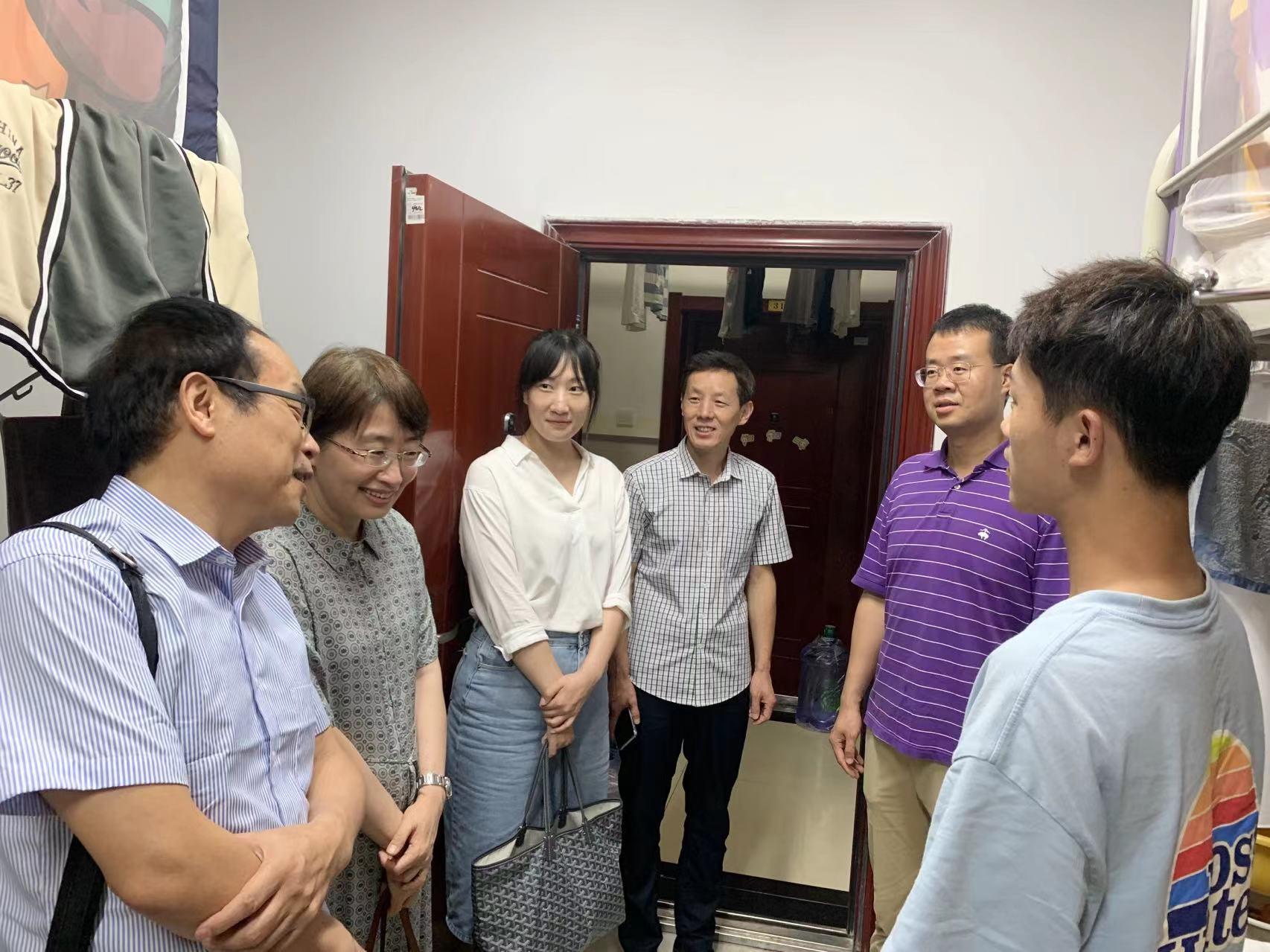 2022年7月24日下午,经金学院赵春艳副院长、金融系主任何建奎老师、电商系主任王乐老师、国贸系郭文钰老师在启德书院辅导员龙树荣老师的带领下走访兴庆校区学生宿舍,看望慰问2021级经金学院本科生。2021级本科生属于经管大类招生入校,近期根据教务处安排已完成专业选择,确定专业学院。