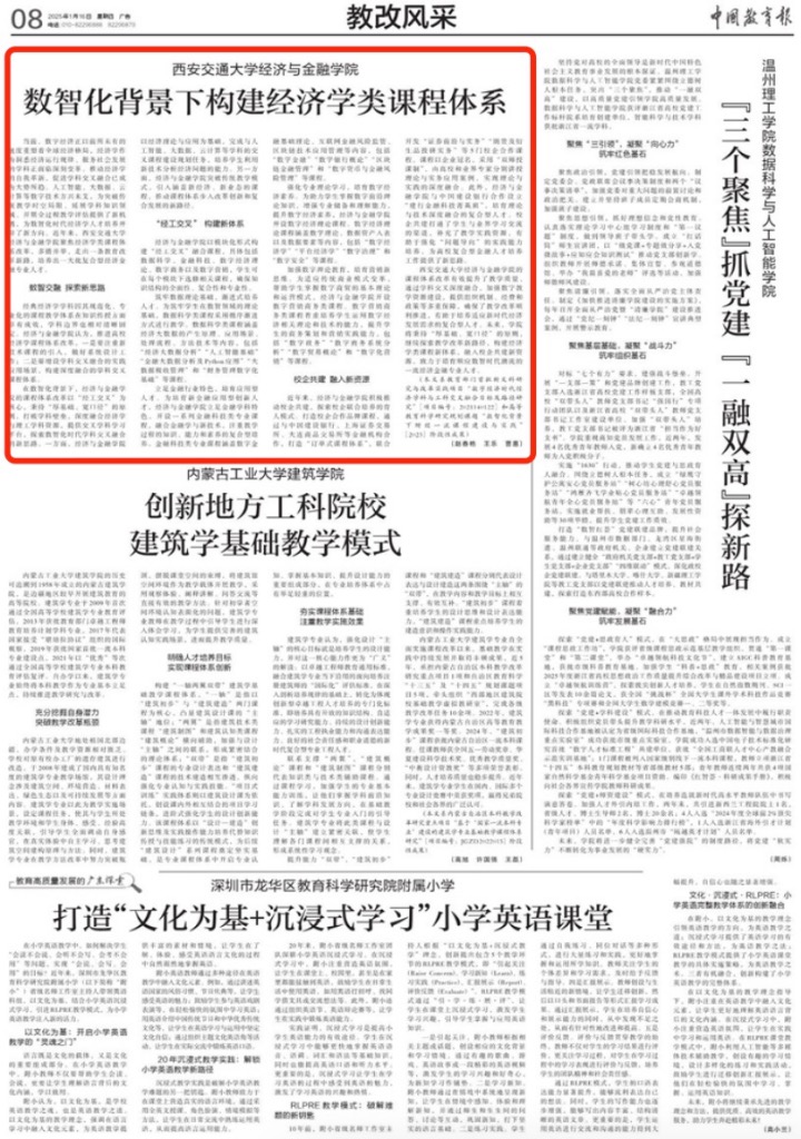 【中国教育报】赵春艳、王乐、曹惠:数智化背景下构建经济学类课程体系