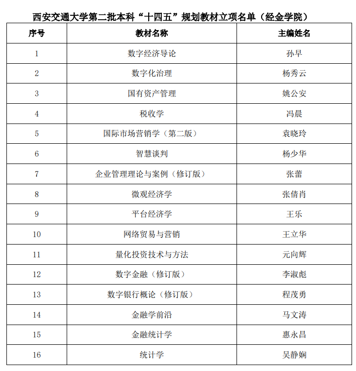 根据《关于做好“十四五”普通高等教育本科国家级规划教材建设和推荐工作的预通知》要求,学校教务处日前组织开展了第二批校级本科规划教材建设项目的推荐工作。根据专业内涵建设情况和发展规划,经金学院16本前沿性、创新性强的高水平专业核心教材被认定为漫蛙漫画 第二批本科“十四五”规划教材。学院向获批教师表示热烈祝贺,希望教材编写团队合理安排编写任务,高质量完成规划教材编写工作。